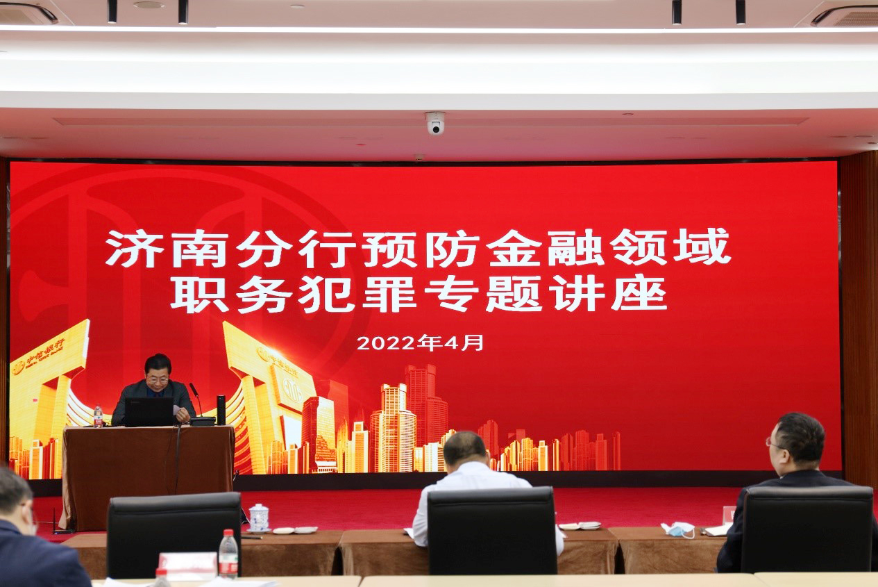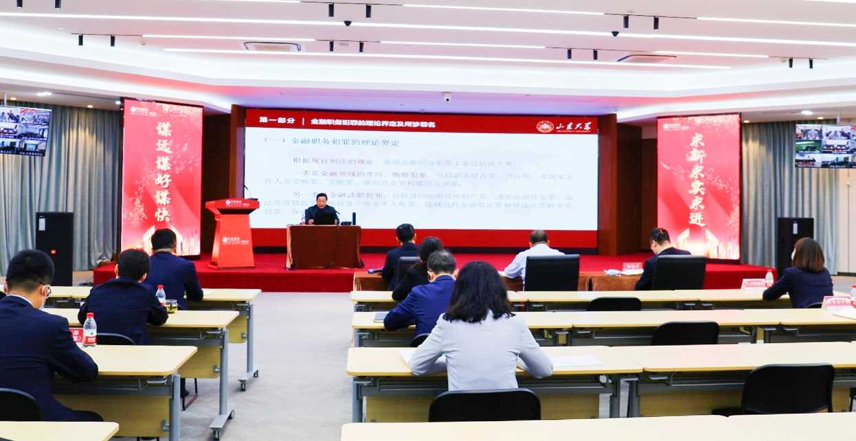 2022年4月28日上午,國浩濟南資深顧問、山東大學法學院教授胡常龍應邀為中信銀行濟南分行作了《金融職務犯罪刑法治理的現(xiàn)代化》專題講座。講座采用了線上直播、線下參會同步進行的方式,中信銀行濟南分行領導和各部門負責人和二級分行及支行班子成員、部門負責人參加了本次講座。