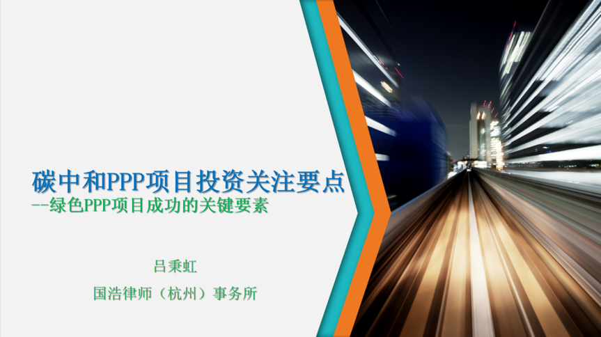 國浩杭州合伙人呂秉虹率先與大家分享了碳中和PPP項目投資關注要點。他認為,綠色PPP項目具有支持污染防治和推動經濟結構綠色低碳化的重要作用,但現階段確實存在著缺乏合理的投資回報機制、重建設輕運營以及項目收益未充分考慮ESG導致項目不可持續等問題。正因如此,綠色PPP項目的合法合規性也應成為項目投資的根本關注點。他指出,要充分運用現有綠色金融形式,推動金融業綠色金融創新,最終實現綠色PPP項目與綠色金融的有機結合。他總結道,評估一個優秀的綠色PPP項目,要對其所處行業在雙碳目標中的地位、項目所在地的財政承受能力、自身的運營經驗與能力、項目自身收益、碳減排交易收益、及社會效益等因素進行綜合考量。