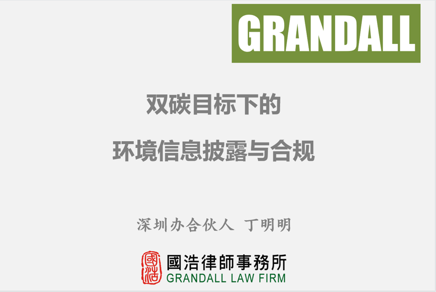 國浩深圳合伙人丁明明分別從環境信息披露的必要性、雙碳目標對環境信息披露規則的影響、雙碳目標下的環境信息披露以及雙碳目標下的環境合規四個方面與參會同行分享了她對雙碳目標下的環境信息披露和合規審查的研究內容。她指出,在雙碳目標的指引下,企業的ESG表現日漸成為資本市場投資決策的考量因素之一,環境信息披露范圍不再局限于上市公司和發債企業,對于適用范圍內的企業披露環境信息也提出了具體的要求,不再是自愿性披露。此外,聚焦于環境信息披露的合規審查,丁律師建議首先要建立重點公司環保合規體系,其次要定期對環保合規及披露情況進行評估審查,并在必要時聘請第三方機構提供專業化信息披露服務和合規咨詢服務。