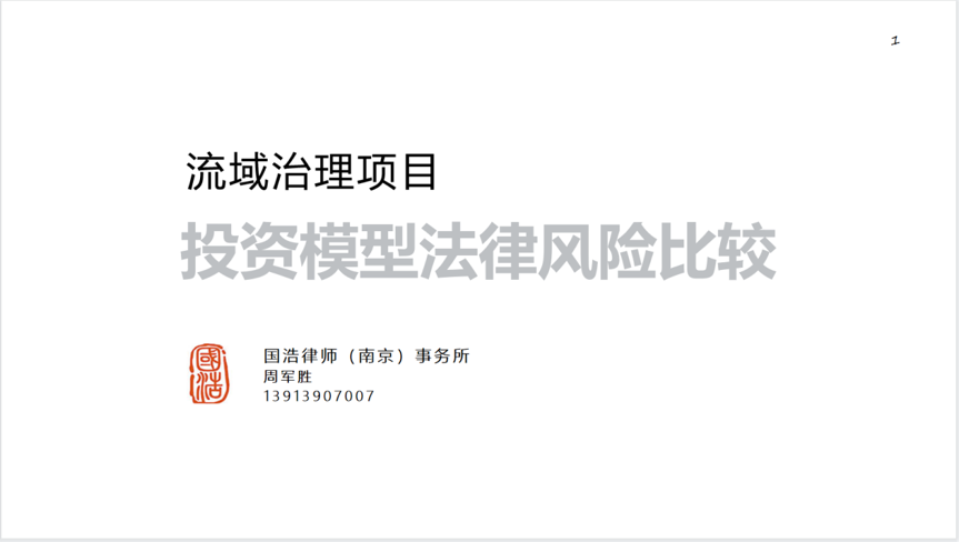 周軍勝律師著重介紹、對比了流域治理項目中不同投資模型的法律風險。他首先強調,在流域治理項目中,《水土保持法》《航道法》《水污染防治法》《長江保護法》等多部法律組成了“長江法律保護體系”,這在環境治理領域具有舉足輕重的跨時代意義。隨后他詳細介紹了BOT、EPC+、ABO、PPP幾大類交易模型,并結合EOD和基礎設施公募REITs的應用現況,綜合分析了不同模型所存在的法律風險。最后,他引用4月26日中央財經委第十一次會議中提到的“當今和今后一段時間…構建現代化基礎設施體系…實現經濟效益、社會效益相統一,服務國家戰略”的要求,提出暢想:一是在EOD模式下,充分和規范引用PPP模式吸引社會資本,完成項目初投資;二是在項目建成并運營一定時間后,再應用基礎設施公募REITs的工具,吸引投資,擴大項目權益性資本,為后續開發創造更優條件;三是依次循環,形成良性的投資、回收的經營體系。