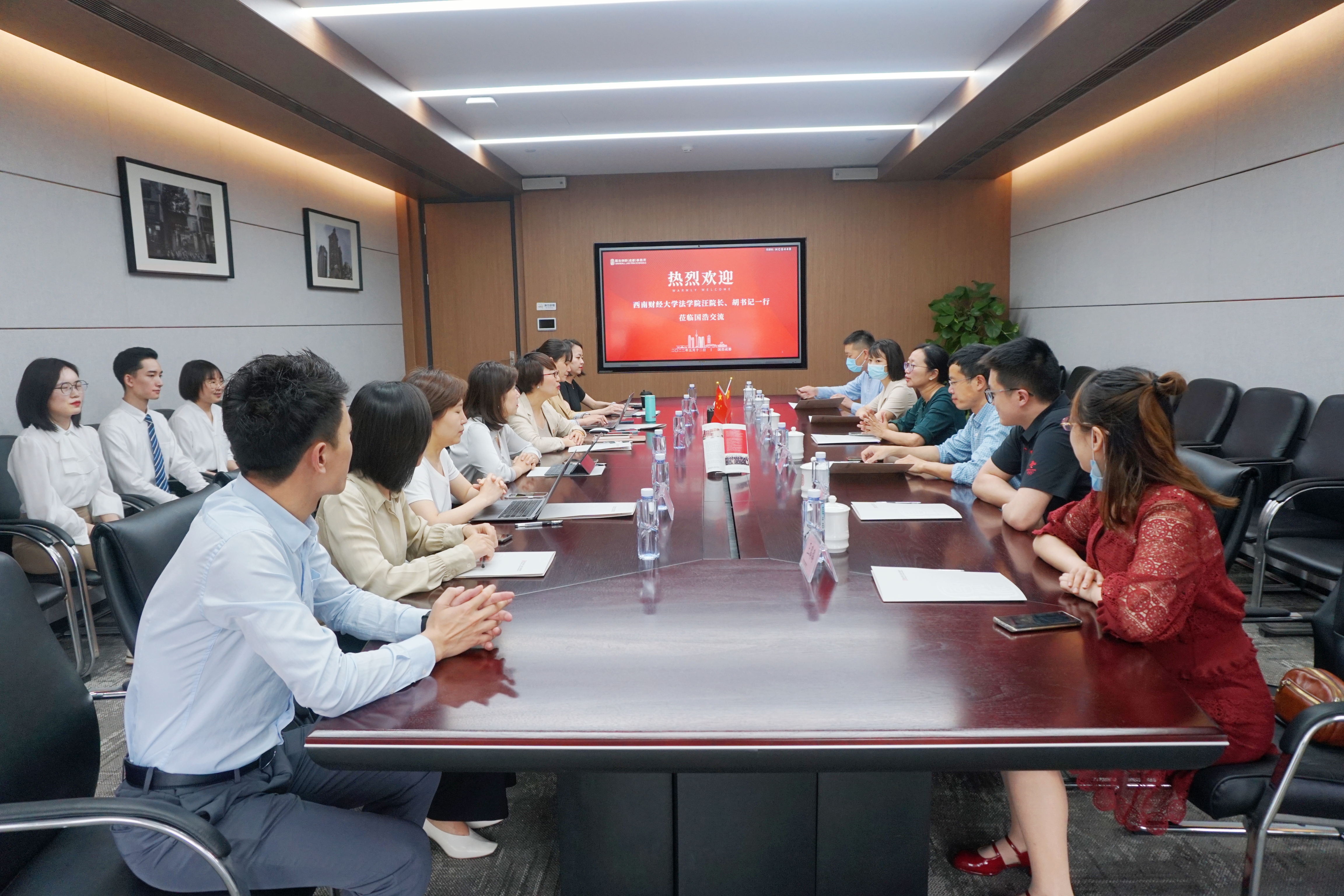 2022年5月12日,西南財經大學法學院副院長汪蕾、副書記胡建軍一行6人蒞臨國浩成都辦公室交流。國浩成都黨委副書記、管理合伙人宋玲玲,合伙人楊慧、何小麗、馬濤、陳虹及數位畢業于西南財經大學的國浩成都青年合伙人、律師、實習律師等一同熱情接待。