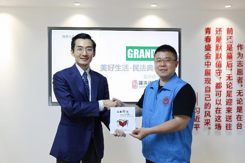 國浩濟南向“泉潤助殘”志愿服務隊贈送了濟南市律師協會印發的《民法典漫畫手冊》,以助力提高殘疾人群體對自身權益保障的了解,引導其正確運用法律武器依法維護自身合法權益。