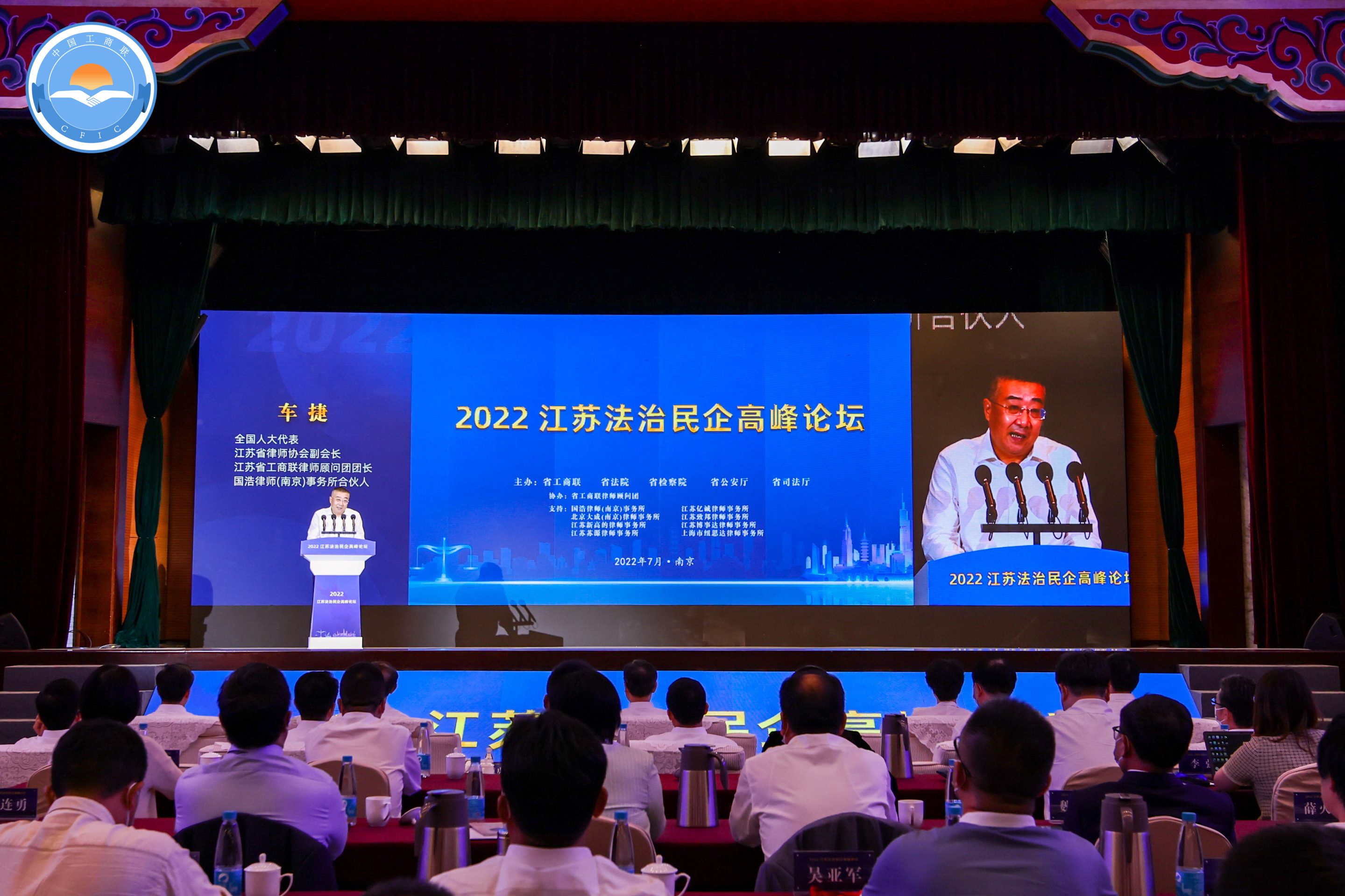 2022年7月18日,2022江蘇法治民企高峰論壇在南京舉辦。全國人大代表、江蘇省律師協(xié)會(huì)副會(huì)長、江蘇省工商聯(lián)律師顧問團(tuán)團(tuán)長、國浩執(zhí)行合伙人車捷作為江蘇省工商聯(lián)律師顧問團(tuán)代表上臺(tái)發(fā)言。國浩律師(南京)事務(wù)所榮獲“‘萬所聯(lián)萬會(huì)’機(jī)制建設(shè)示范單位”榮譽(yù)稱號(hào)。