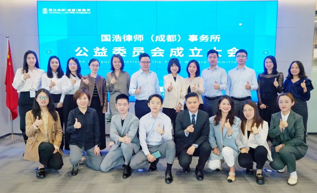 國浩成都一直熱心公益,為組織和規范國浩成都的公益工作,整合專業法律志愿服務資源,更好傳遞法律公益力量,于2022年5月20日成立了公益委員會。目前,國浩成都公益委員會成員共有31名律師,由國浩成都管理合伙人、主任劉小進擔任主任,國浩成都合伙人陳虹,律師鄭立秋、沈耀璘擔任副主任,分“護航組”“守護組”“活動組”三個工作小組開展工作。