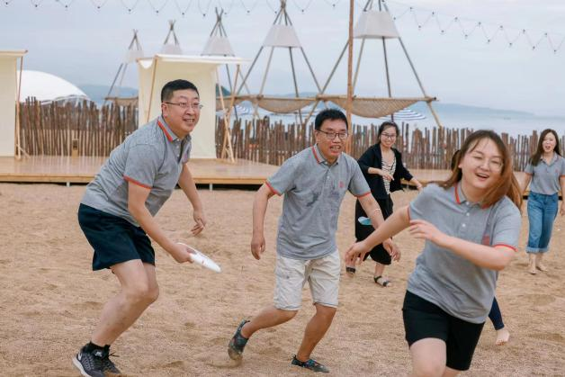 腦力挑戰后,是體力比拼。充滿趣味的“飛盤競賽”游戲,讓大家在沙灘上展開了精彩的角逐。這既需要充分的技術,也要求隊員之間具有良好的默契配合,每一次的傳盤、跑位、接盤,都是國浩大連家人們活力與熱情的最好體現!