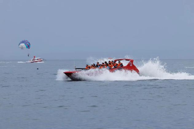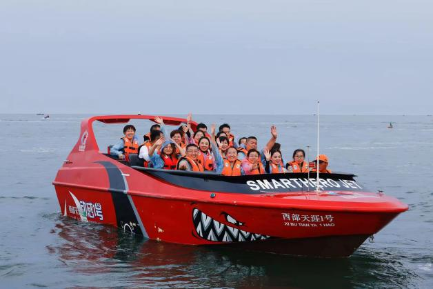 愉快的團建游戲后,大家紛紛換上救生衣,登上游艇乘風破浪,體驗大海之上的速度與激情。