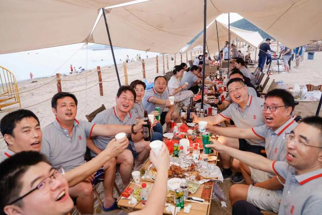 歡樂暢快的團建游戲和涼爽刺激的快艇沖浪讓大家感到有些疲憊,此時海灘燒烤已就位!滋滋滴油的肉串、火焰跳動的烤爐、香氣撲鼻的調料……火熱的燒烤與涼爽的海風,這就是夏日的快樂!