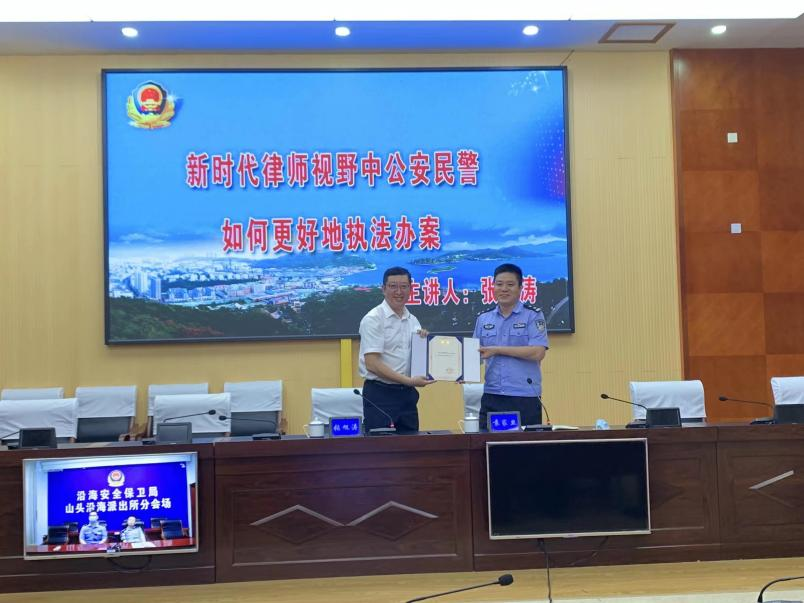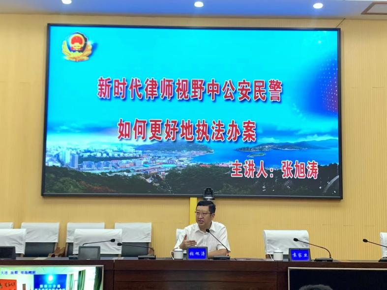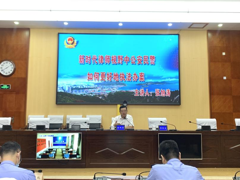 為進一步提升民警執法能力和水平,持續深化執法規范化建設,2022年8月19日下午,國浩大連管理合伙人、主任張旭濤應邀為大連市公安局旅順口分局執法辦案民警作了《新時代律師視野中公安民警應如何更好地執法辦案》專題講座,并獲聘為“旅順口公安分局執法實務特邀專家”。講座由大連市公安局旅順口分局副局長袁家旦主持,全局執法辦案民警共計100余人參加了講座。