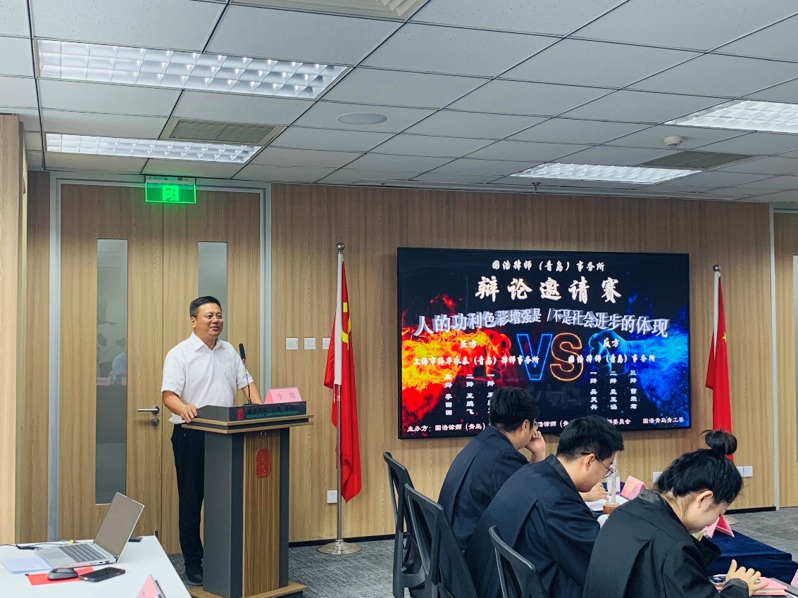 本次邀請賽由國浩青島及海華永泰青島各派出一支辯論隊參加,圍繞“人的功利色彩增強是否是社會進步的體現”這一主題展開激烈辯論,雙方律師邏輯清晰、引經據典,雖有針鋒相對,卻又不失風度。辯手們精彩的對峙,讓現場高潮迭起、氣氛熱烈,給評委和觀眾獻上了一場思想碰撞激烈的比賽。