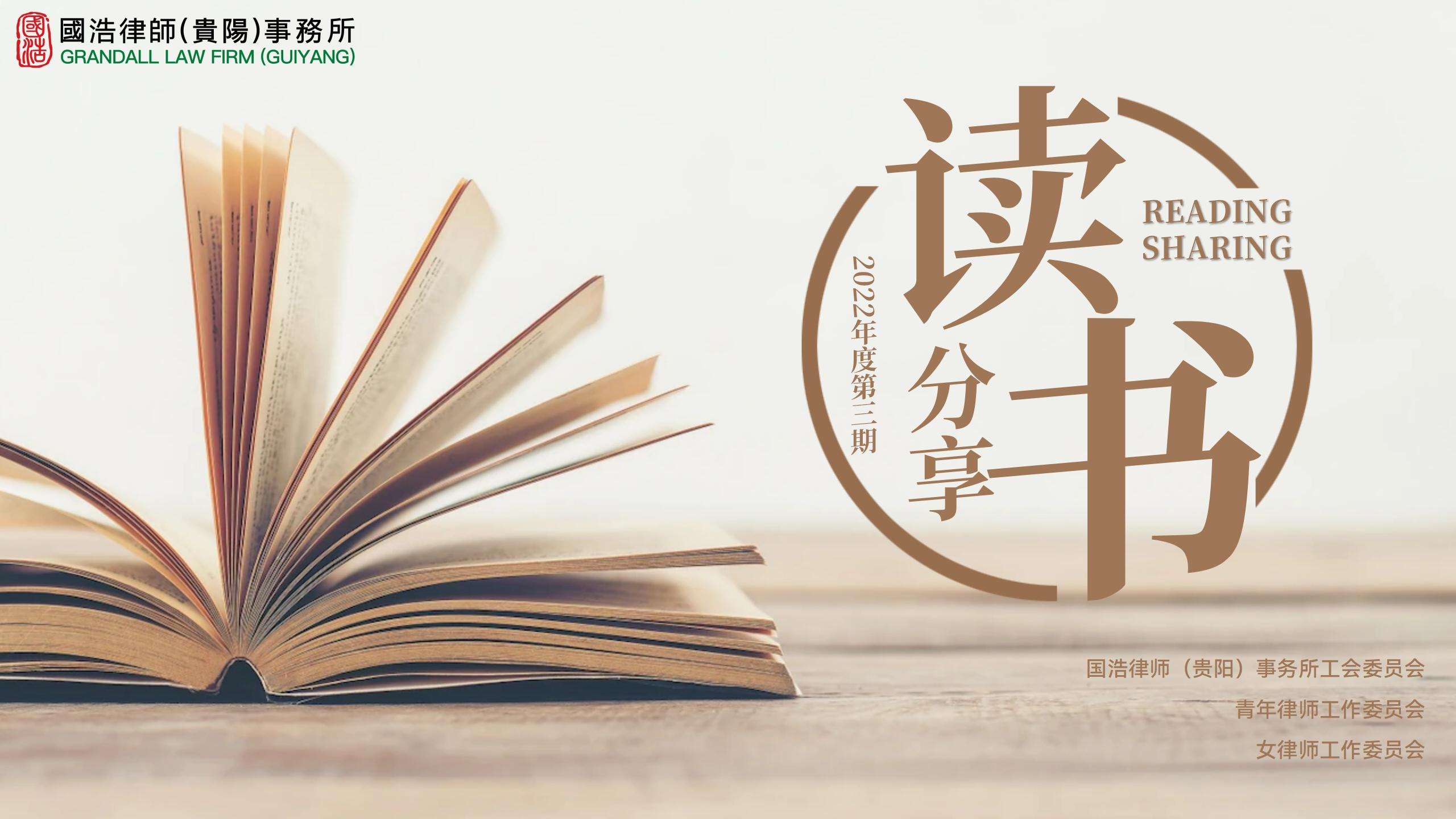 “用讀書(shū)接通彼此的岸”,2022年 11月3日下午,國(guó)浩貴陽(yáng)第三期讀書(shū)分享會(huì)如期舉行。國(guó)浩貴陽(yáng)合伙人楊波、律師譚琪以及實(shí)習(xí)律師張嘉蓉、吳頔分別為大家?guī)?lái)了精彩分享。