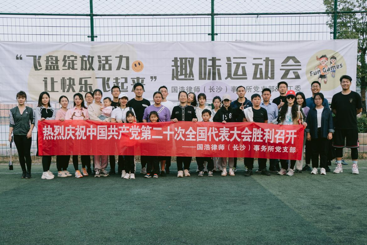 正值秋末好風光,為了熱烈慶祝黨的二十大勝利召開,2022年11月6日下午,國浩長沙黨支部聯合國浩長沙青年律師工作委員會共同舉辦了“飛盤綻放活力,讓快樂飛起來”主題趣味運動會,以提升國浩長沙家人“強健體魄、追求卓越”的意識,增強國浩長沙集體凝聚力,營造協作共贏氛圍。
