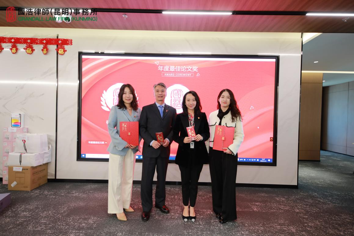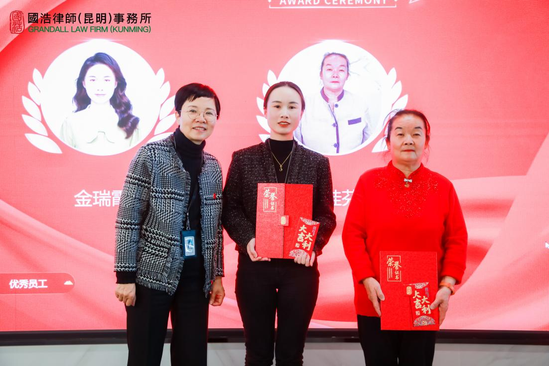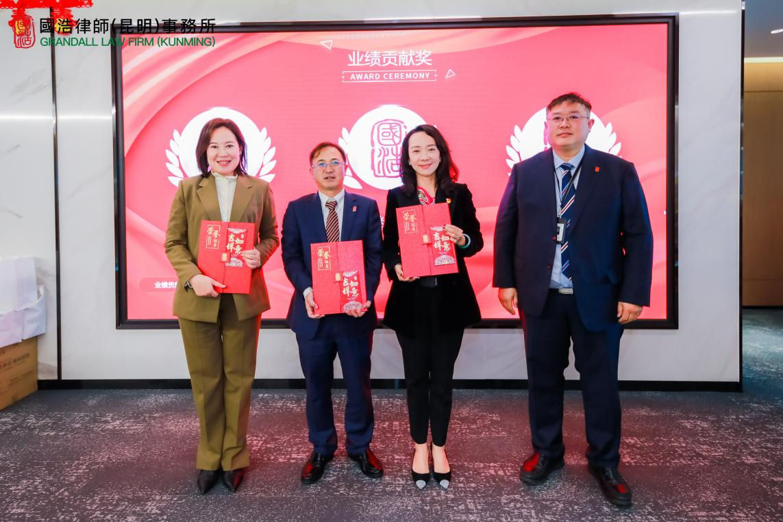 在隨后的年度表彰環節中,國浩昆明為“最佳論文獎”“最佳案例獎”“業績貢獻獎”“品牌貢獻獎”“最佳合作獎”“優秀合伙人”“優秀黨員”“優秀律師”“優秀助理”“優秀員工”“學習之星”等獲獎集體和個人頒發了獎項,致敬每一位優秀的國浩人,他們是熠熠星光,為國浩昆明的高質量發展貢獻自己的力量。