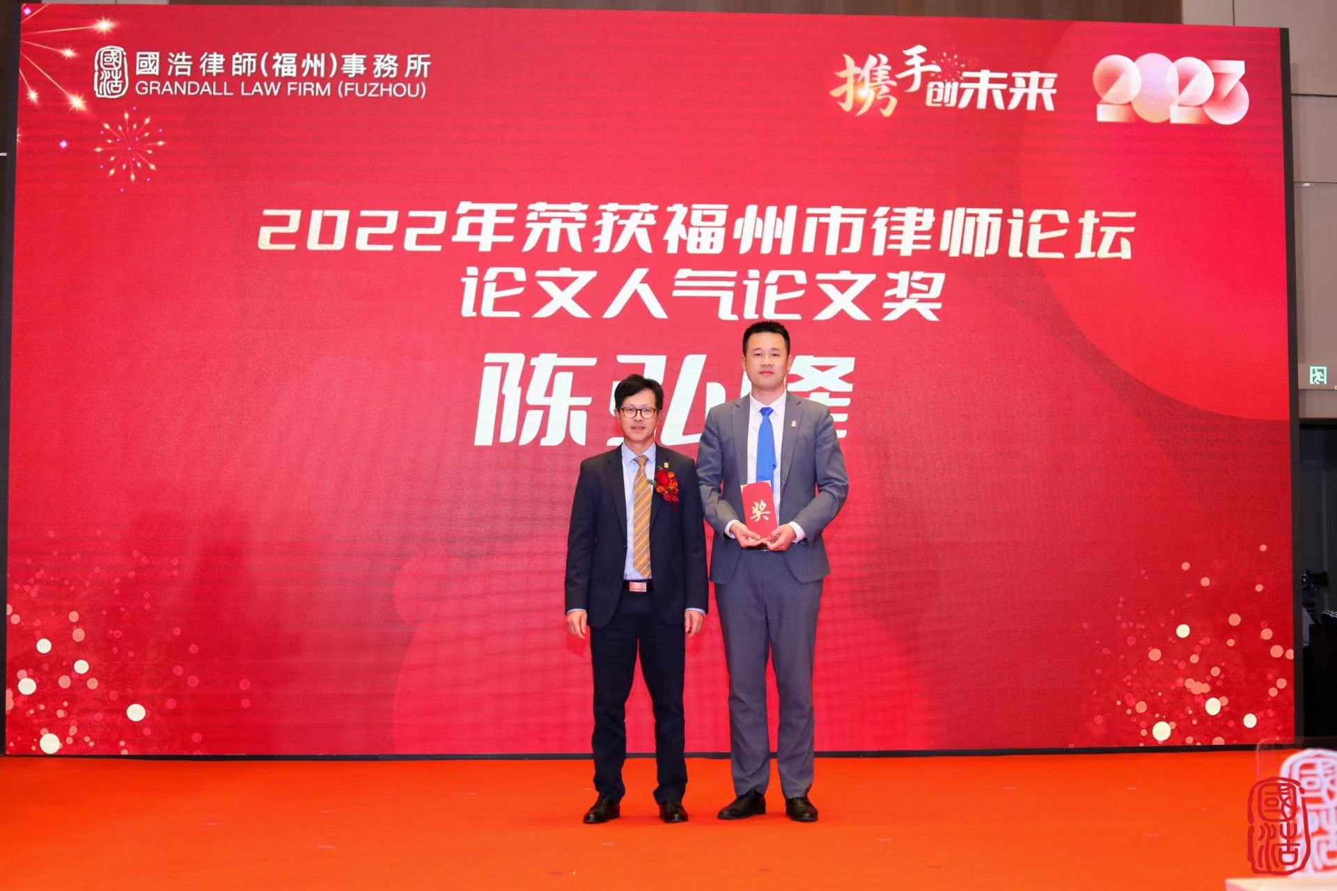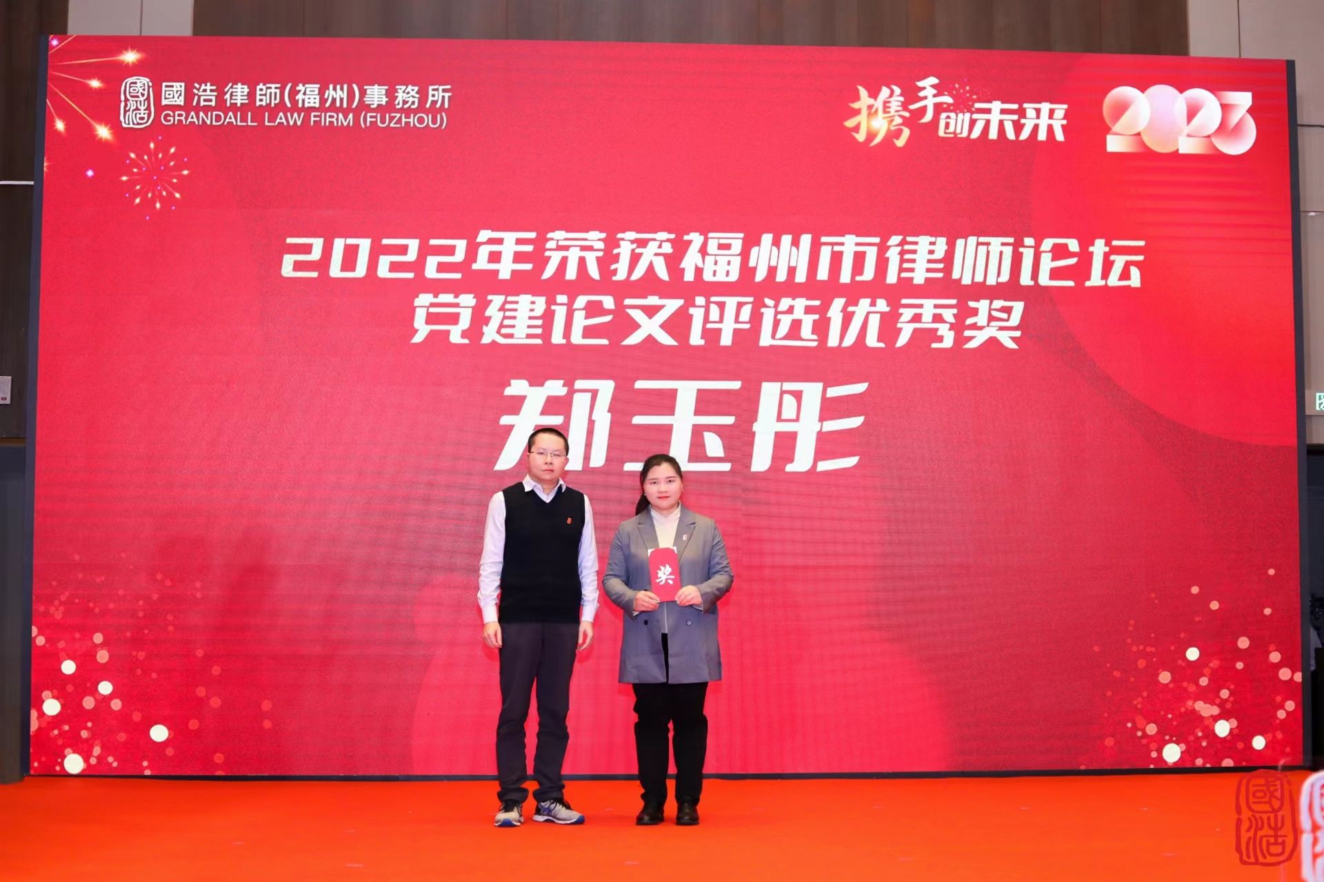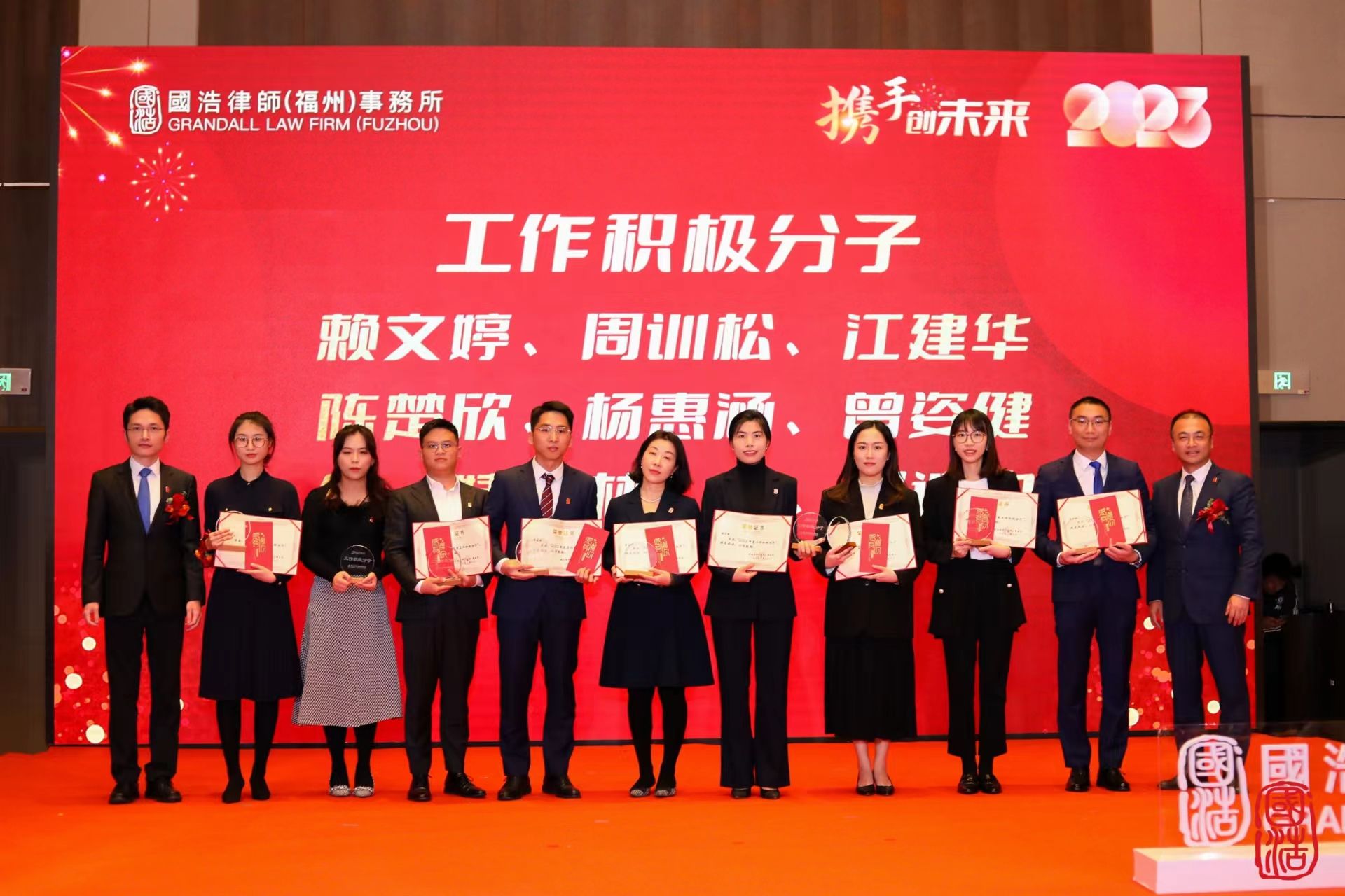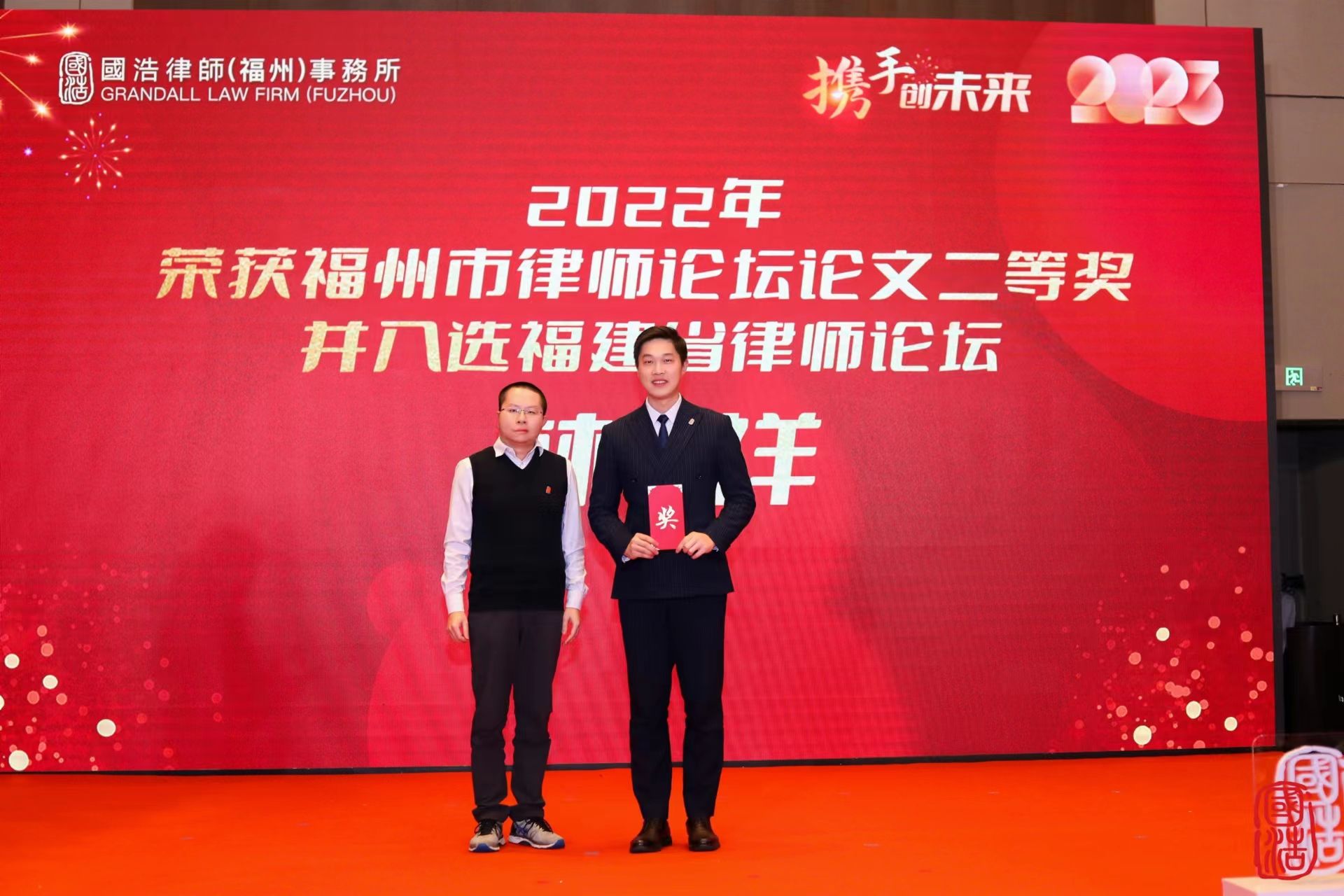 在年度表彰環節中,國浩福州分別為“年度團體貢獻獎”“2022律師論壇榮譽獎”“新銳員工獎”“工作積極分子”“最佳公益獎”無私奉獻獎”“抗疫先鋒獎”“年度黨員先鋒獎”“年度優秀律師”“最佳開拓獎”“業務精進獎”等獲獎集體和個人頒發了獎項,表彰過去一年為國浩福州作出突出貢獻的家人。