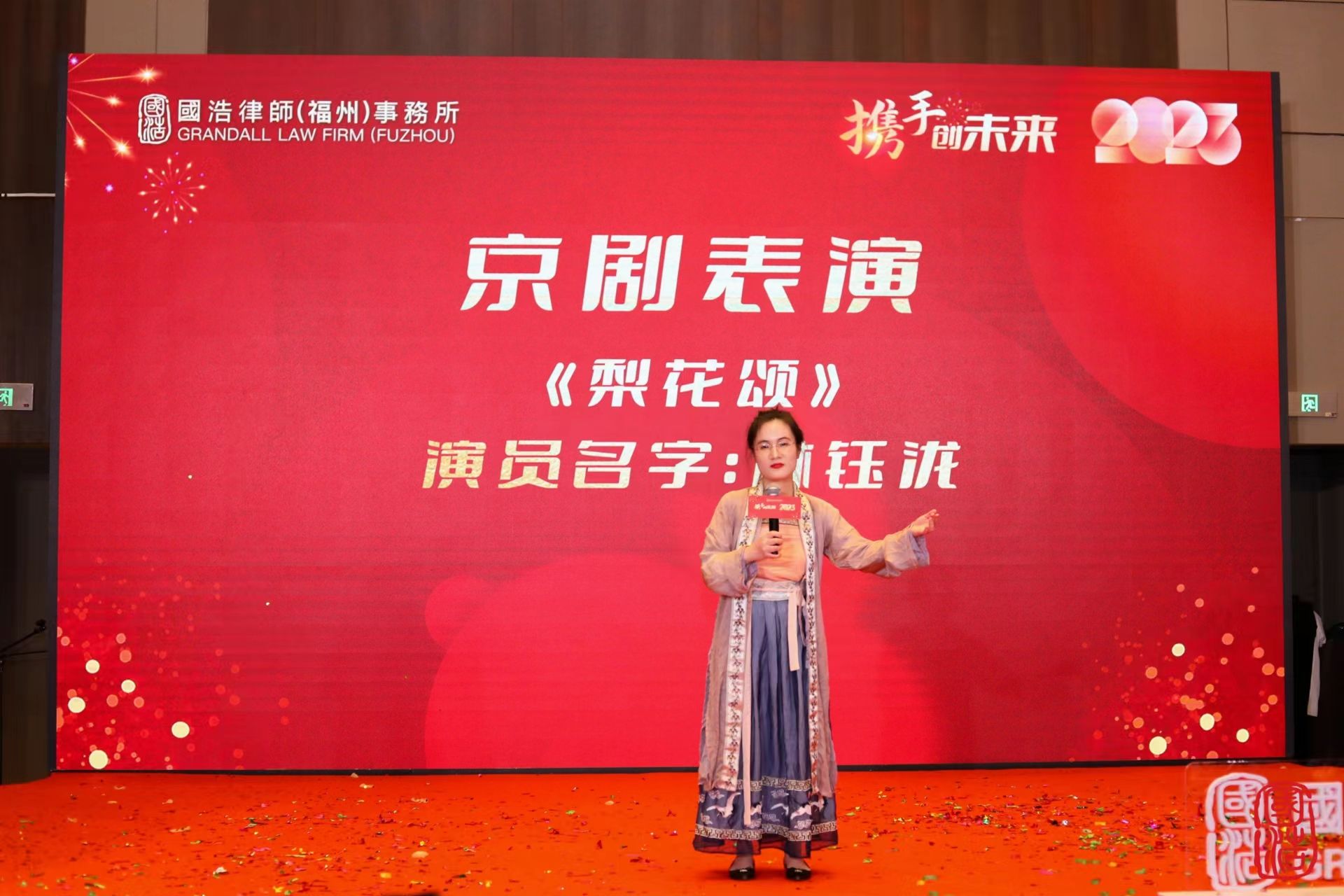 2022年,國浩福州迎來了23位新家人,他們為律所融入了新鮮血液,帶來了新的活力。晚會中他們攜手演唱了歌曲《我相信》,新人林鈺瀧還帶來了情深意濃的京劇曲目《梨花頌》。