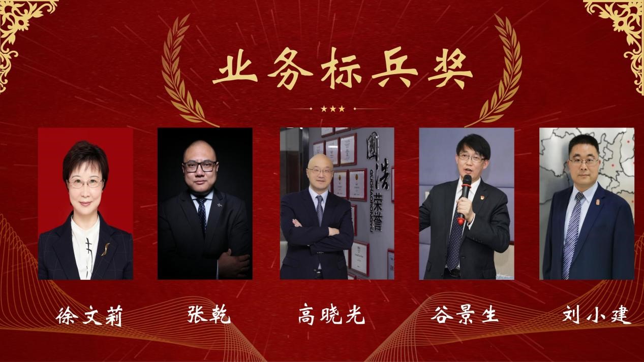 國浩石家莊管理合伙人徐文莉、谷景生,高曉光主任,合伙人張乾、劉小建斬獲“業務標兵獎”。