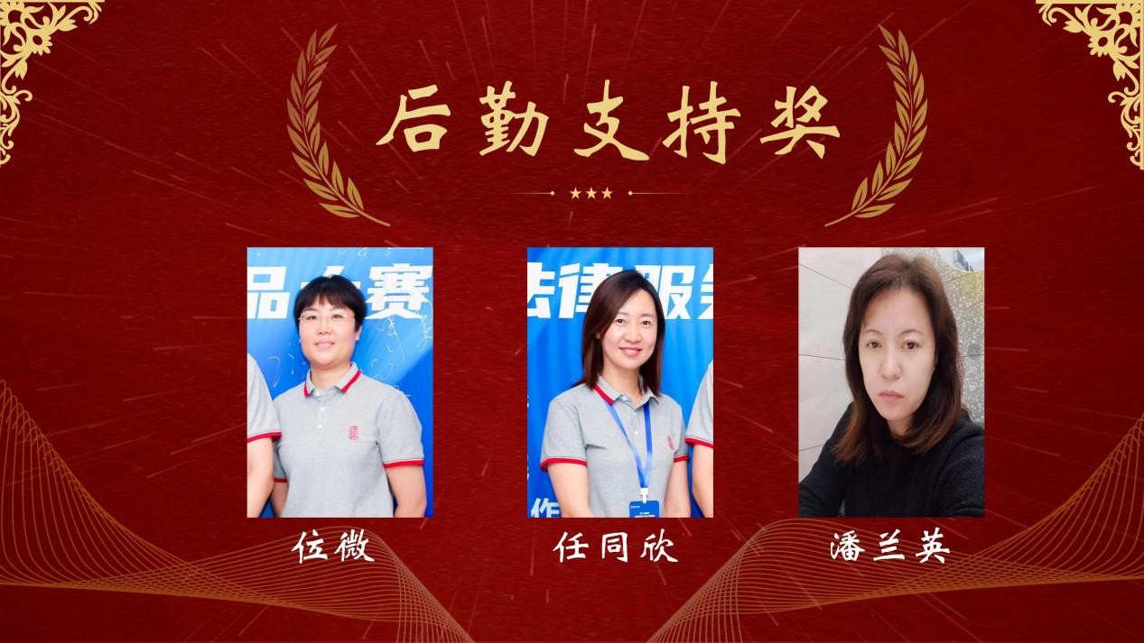 律師的發展離不開行政團隊的默默付出。國浩石家莊行政團隊人員位微、任同欣,財務團隊潘蘭英獲得“后勤支持獎”。