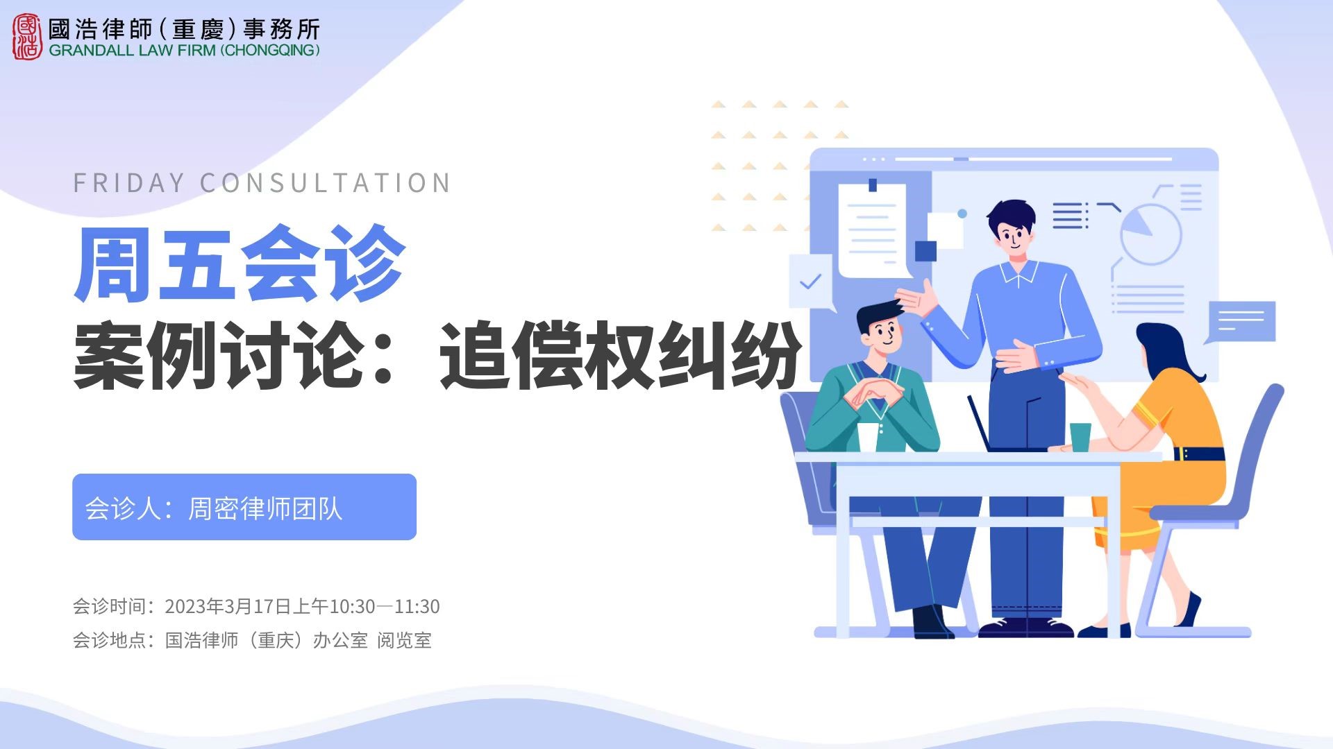 行遠自邇,篤行不息。律師在執(zhí)業(yè)過程中難免遇到各種疑難復雜的案件,為促進和提高律師的專業(yè)水平及職業(yè)素養(yǎng),深入持續(xù)地進行專業(yè)學習和研究,增進律師團隊間的協(xié)作與交流,國浩重慶在今年特別啟動了“周五案件會診”系列活動。