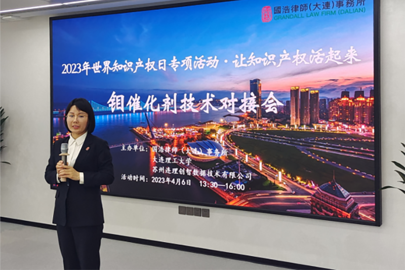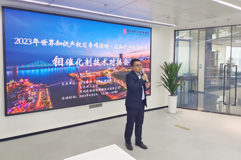 為全面貫徹落實黨的二十大關于“強化知識產(chǎn)權保護”的決策部署,助力大連地區(qū)知識產(chǎn)權事業(yè)高質量發(fā)展,在第23個世界知識產(chǎn)權日即將到來之際,2023年4月6日,由國浩大連聯(lián)合大連理工大學、蘇州連理創(chuàng)智數(shù)據(jù)技術有限公司共同舉辦的“讓知識產(chǎn)權活起來”專項系列活動第一場——鉬催化劑相關技術對接會正式啟幕。此系列活動特邀請遼寧鑫泰鉬業(yè)有限公司、廣發(fā)證券東北分公司、大連航天半島創(chuàng)業(yè)投資基金、研創(chuàng)(北京)科技成果轉化有限公司共同參與,匯聚了產(chǎn)業(yè)方、科學家、律師和科技成果轉化專家等多方人士,共同就技術轉移的具體事宜進行討論,致力打破科研機構與市場之間的“墻”,促進知識產(chǎn)權轉化。