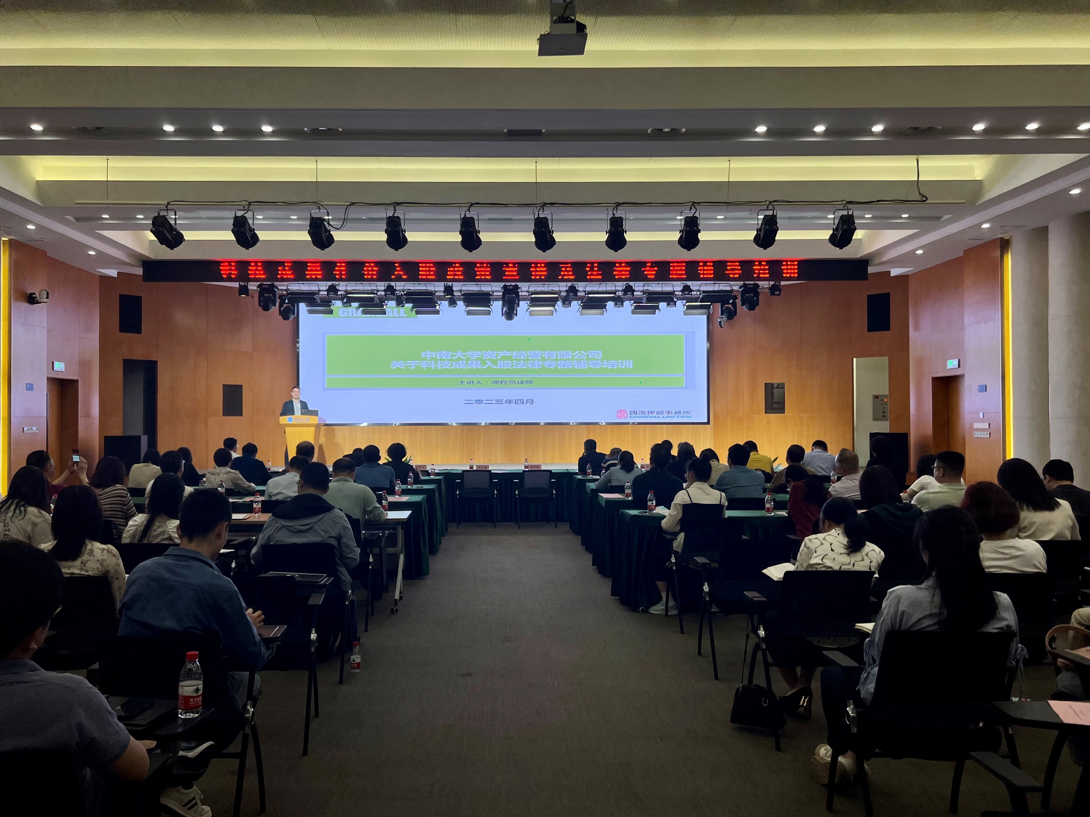 2023年4月17日,由中南大學資產經營有限公司主辦的“科技成果作價入股政策宣講及法律專題輔導”在中南大學科技園總部舉行,國浩長沙合伙人董亞杰、譚程凱受邀出席,譚程凱律師作法律專題培訓。