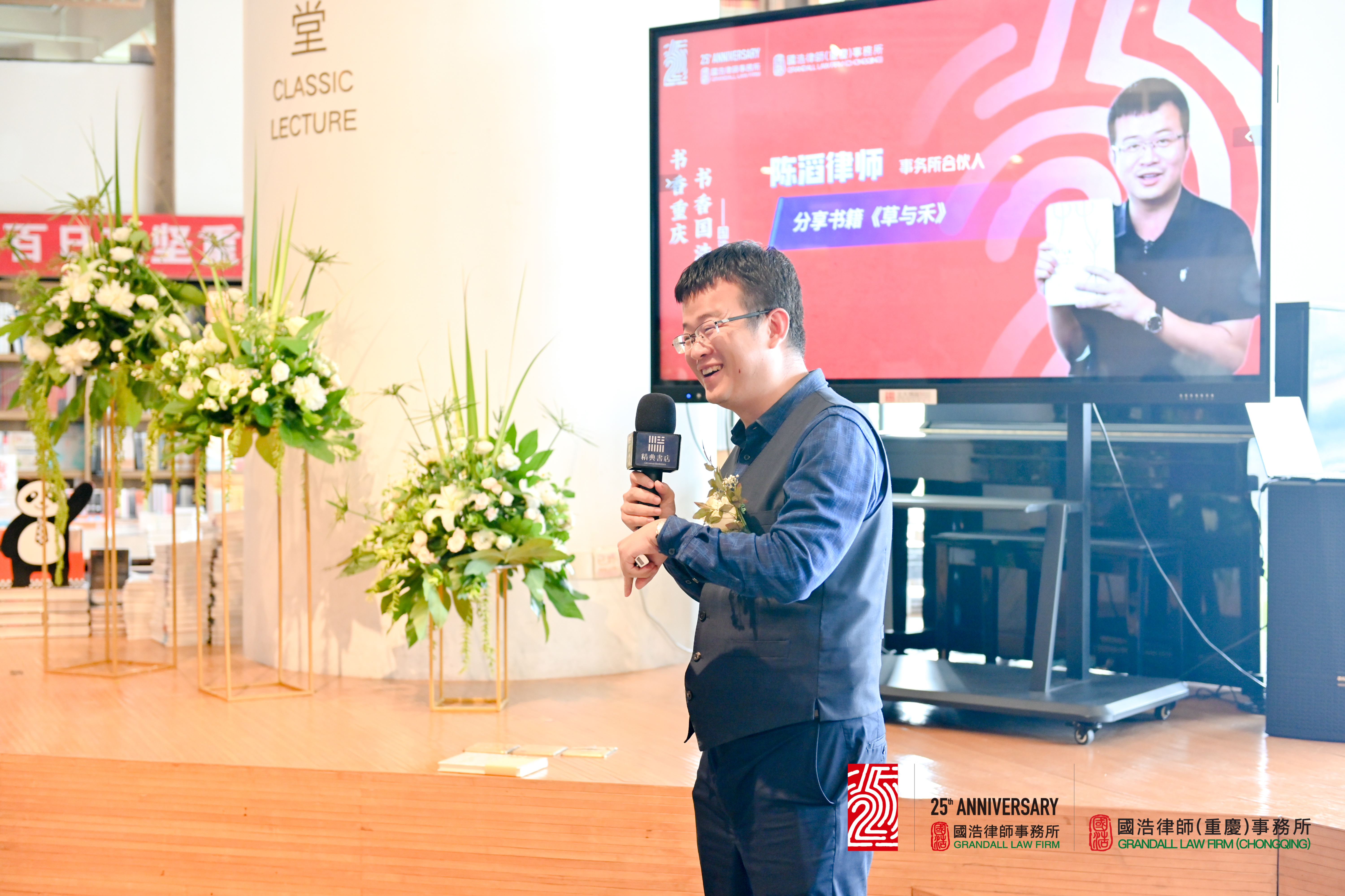 隨后,國(guó)浩重慶合伙人陳滔分享《草與禾》,將大家?guī)氲搅司d延不息的歷史長(zhǎng)河中,感受中華文明的演變史,去思考律師行業(yè)發(fā)展的方向。