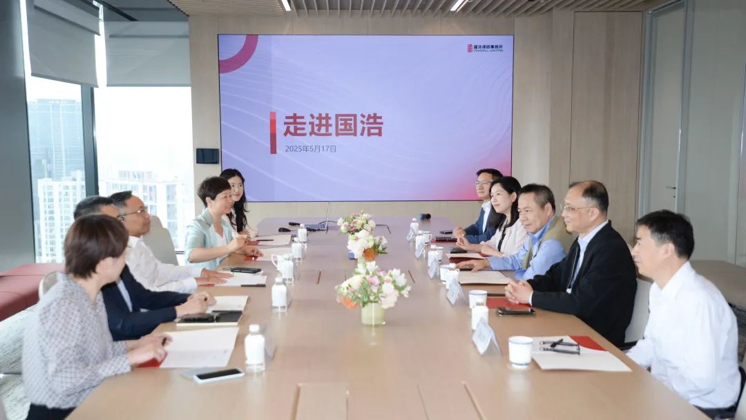 2025年5月17日,中共中央臺辦、國務院臺辦首席法律顧問、法規局局長張萬明,上海臺辦副主任、一級巡視員王立新,上海臺辦協調處處長袁賽丹等一行蒞臨國浩上海辦公室進行調研指導。