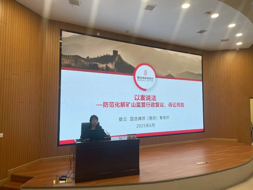 2025年6月11日,國浩南京合伙人蔡云為山西省各市、縣應急管理局從事煤礦安全生產(chǎn)監(jiān)管執(zhí)法工作的有關負責人及業(yè)務骨干人員開展“以案說法—防范化解礦山監(jiān)管行政復議、訴訟風險”專題講座。講座內(nèi)容系統(tǒng)深入,緊扣執(zhí)法實踐痛點,有助于提升礦山安全監(jiān)管執(zhí)法規(guī)范化水平、有效防范法律風險。