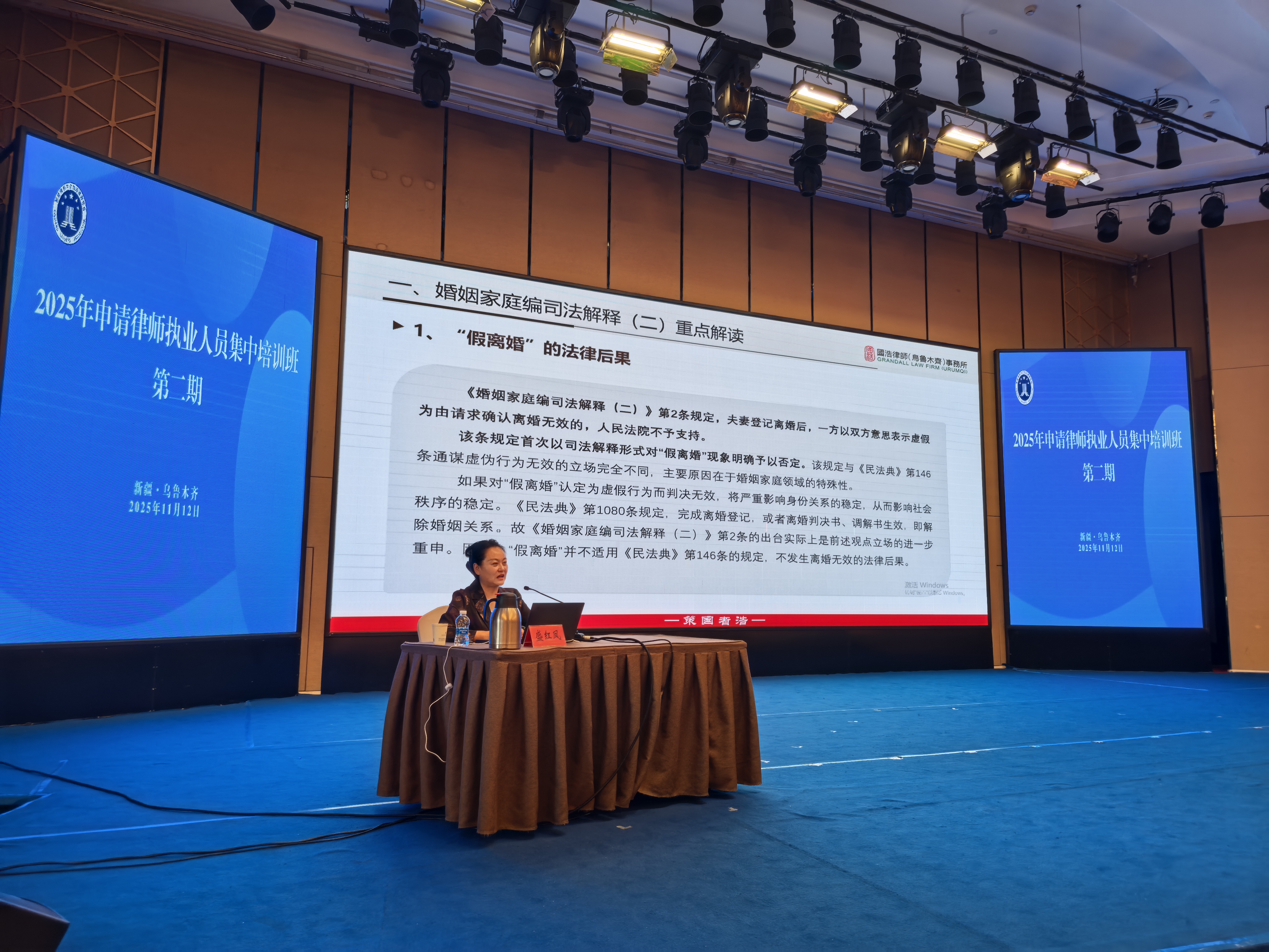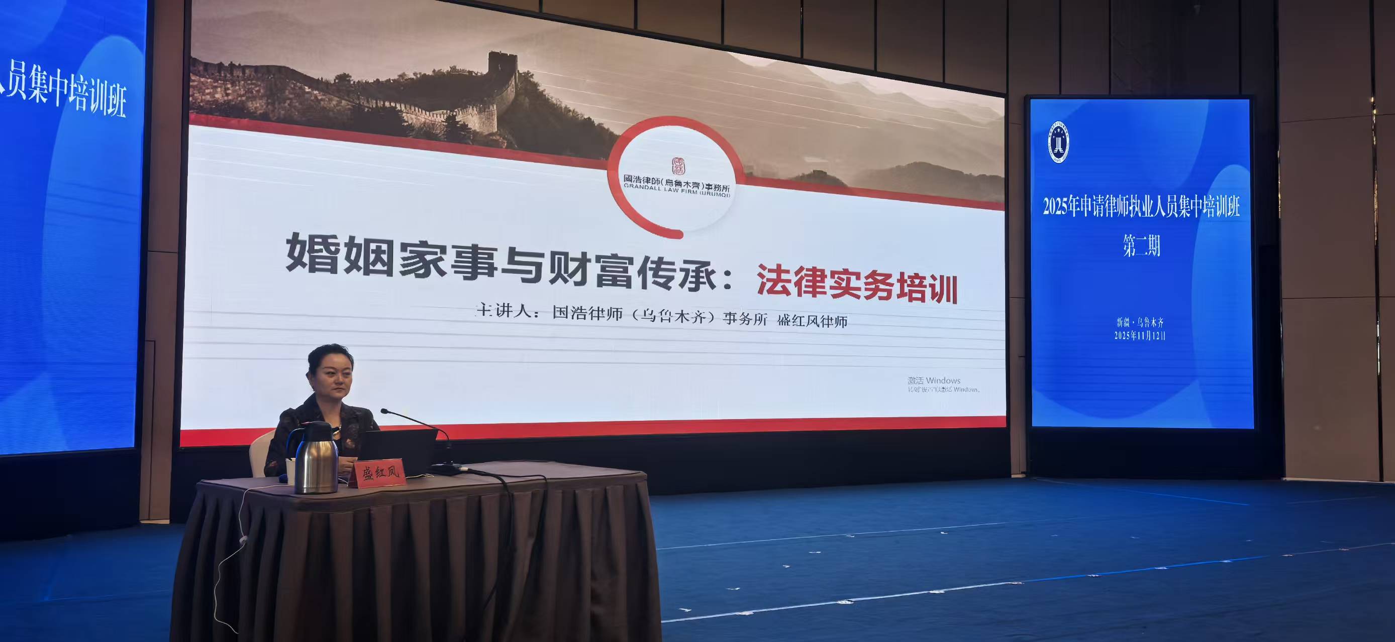 2025年11月17日,國浩烏魯木齊合伙人盛紅鳳受新疆律師協會邀請,為該協會2025年第二期申請律師執業人員集中培訓班開展《婚姻家事與財富傳承:法律實務培訓》專題講座。全區500余名實習律師齊聚課堂,現場提問踴躍、研討氛圍熱烈。