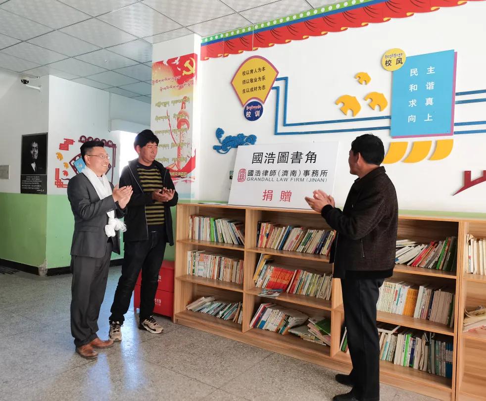 2021年5月14日下午,“援藏律師服務團”成員、國浩濟南律師代表張超走進西藏日喀則市桑珠孜區加慶孜完全小學,開展了“西藏公益進校園”活動。國浩濟南辦公室向學校捐助了價值近2萬元的圖書500套,專門用于營建“國浩讀書角”。這些圖書極大豐富孩子們課外讀物種類,有助于孩子們開拓視野。