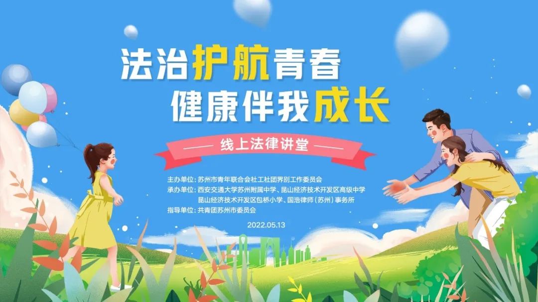 5月15日是國際家庭日,恰逢首個全國家庭教育宣傳周,為積極響應全國婦聯、教育部的通知要求,推動落實家庭監護主體責任,優化未成年人家庭成長環境,由蘇州市青年聯合會社工社團界別工作委員會主辦,西安交通大學蘇州附屬中學、昆山經濟技術開發區高級中學、昆山經濟技術開發區包橋小學、國浩律師(蘇州)事務所承辦的“法治護航青春,健康伴我成長”線上法律講堂圓滿舉辦。