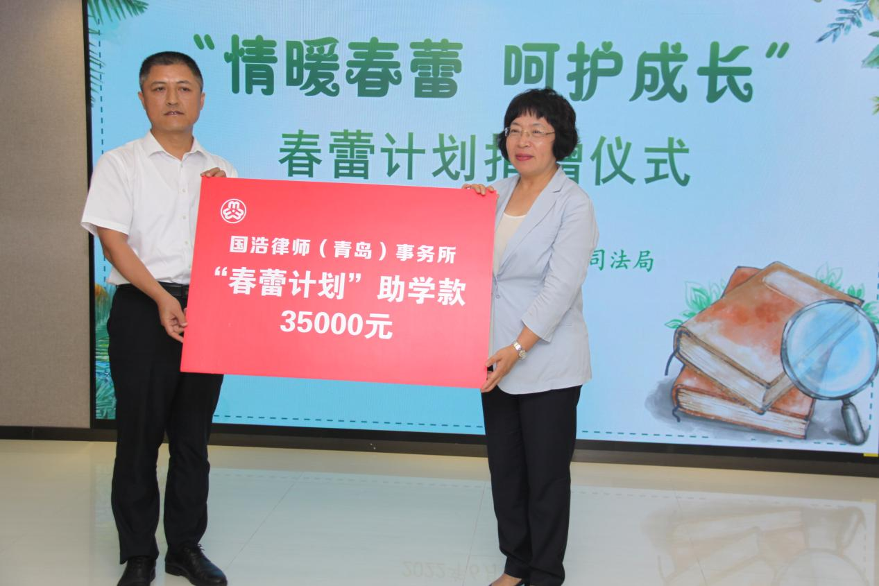 6月20日,青島市婦女聯(lián)聯(lián)合會(huì)、市司法局、市律師協(xié)會(huì)聯(lián)合舉行了“情暖春蕾 呵護(hù)成長(zhǎng)”捐贈(zèng)儀式,國(guó)浩青島黨支部書記、合伙人王振寶代表國(guó)浩青島參加了儀式。