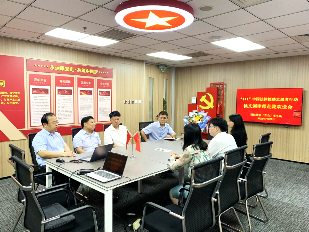 2022年7月27日下午,國浩青島在國浩青島辦公室黨建室為侯文劍律師舉辦了歡送儀式。國浩青島管理合伙人周鵬、合伙人彭山嶺及多名青年律師代表參加。國浩青島黨支部書記、合伙人王振寶主持了會議。