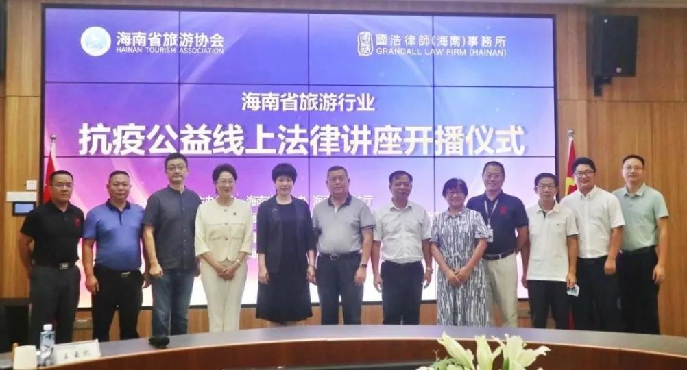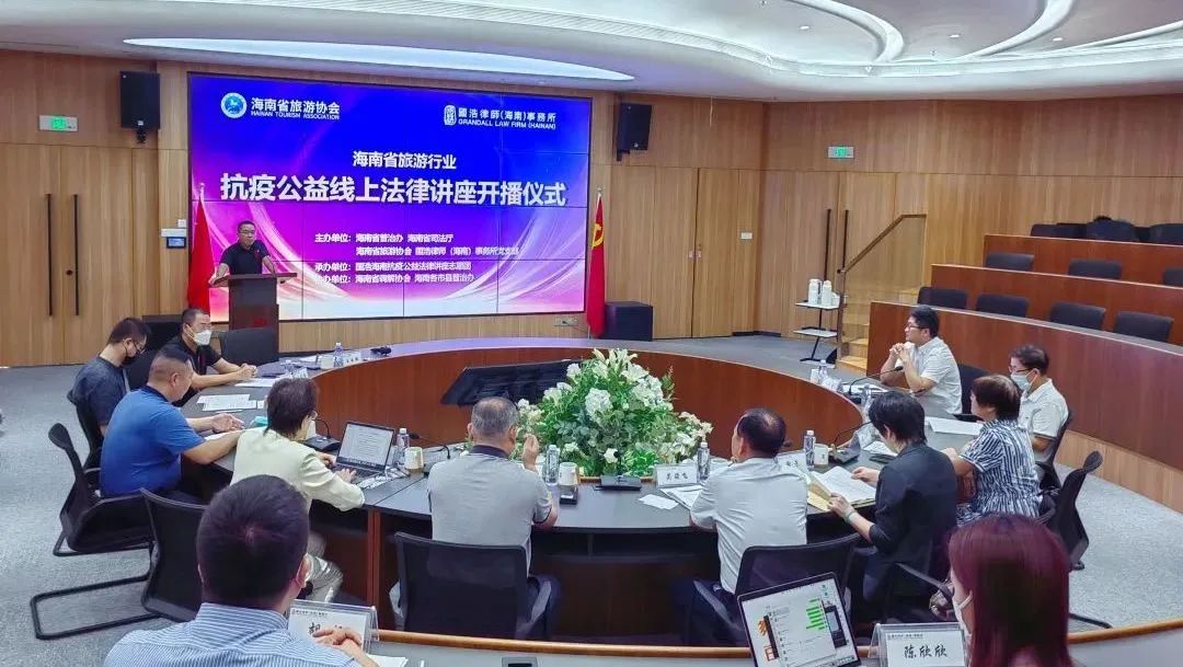 2022年8月25日上午,由海南省普治辦、海南省司法廳、海南省旅游協會、國浩海南黨支部聯合主辦的海南省旅游行業抗疫公益線上法律講座正式開播。海南省司法廳人民調解處調研員、海南省調解協會秘書長吳駿飛,海南省司法廳普法依法治理處副處長謝芳,海南省旅游協會執行會長張會發,海南省調解協會會長、國浩海南管理合伙人、主任姜丹,海南省律師協會監事長、國浩海南管理合伙人王龍奎,以及相關涉旅專業協會秘書長、國浩海南黨支部委員、普法志愿服務團講師參加儀式。