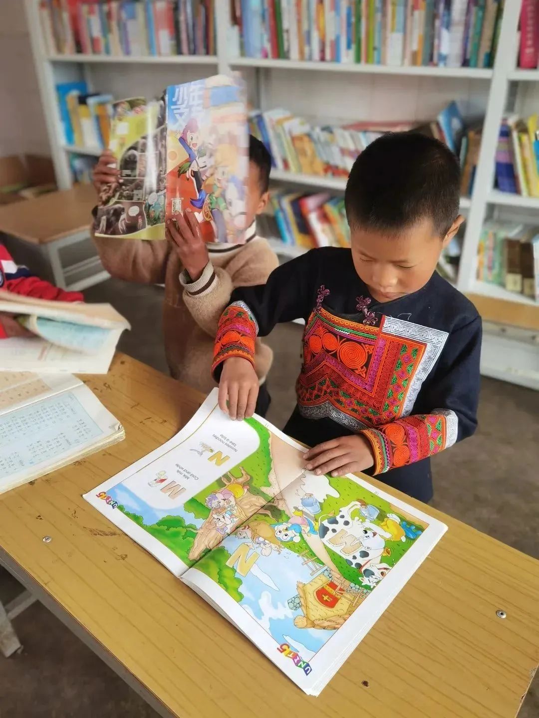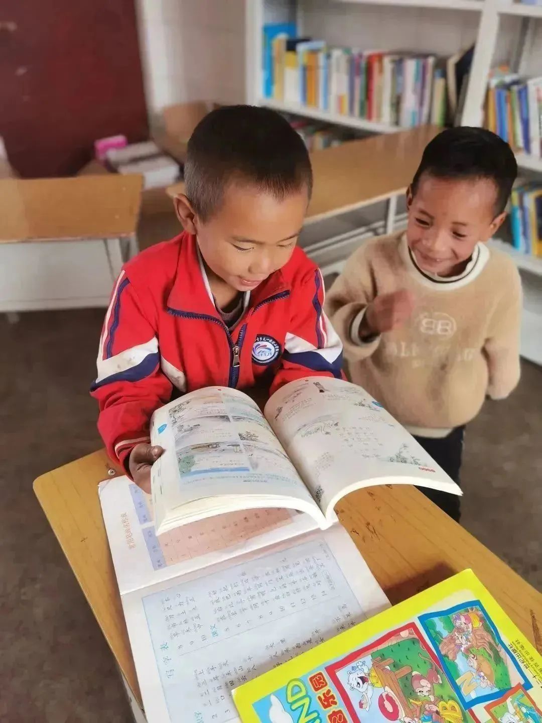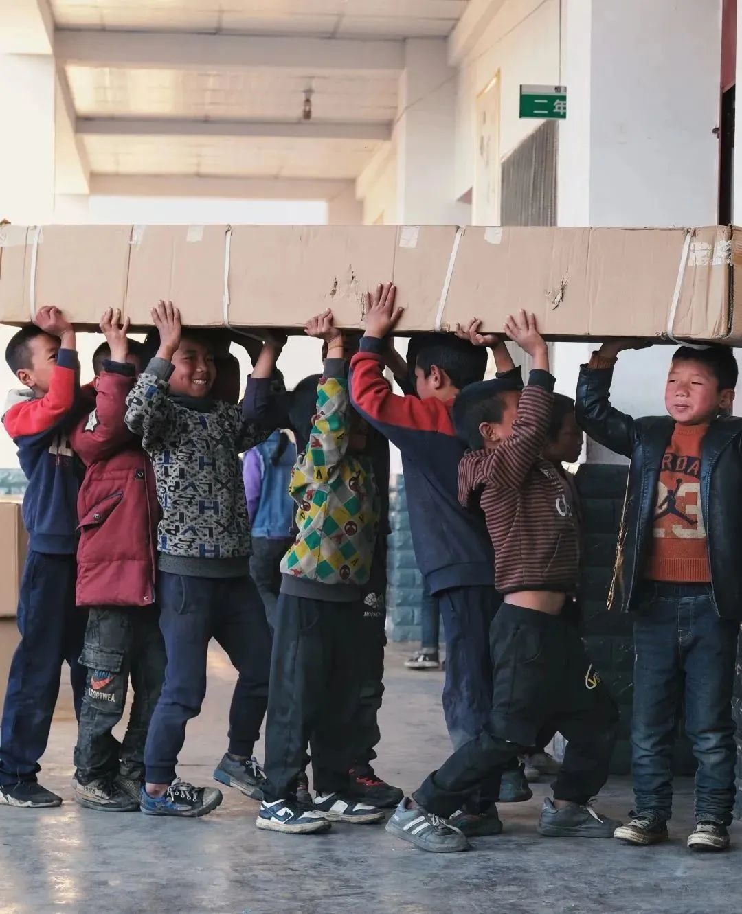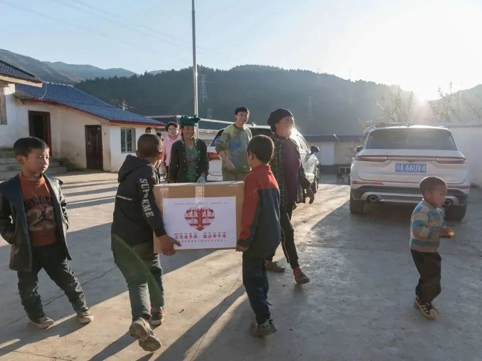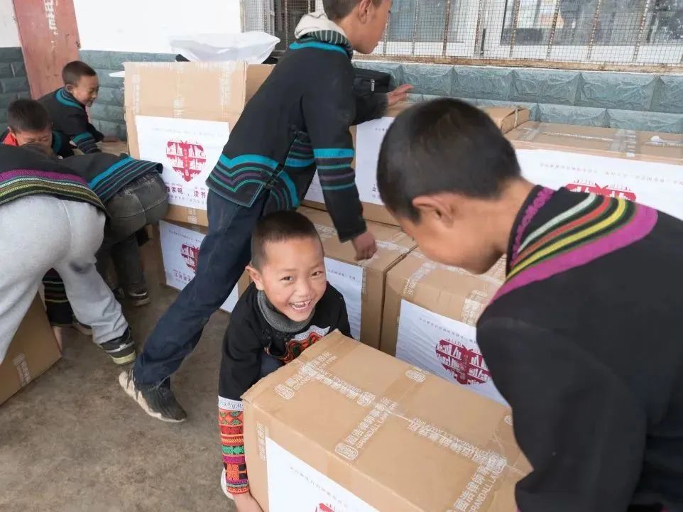 夕陽正好,暖黃色的光撒在山村的每一個角落,孩子們歡呼著跑來,帶著跟陽光一般溫暖的笑意。小朋友們、村民們得知來意,都積極地幫著搬書。“有些七八歲樣子的小朋友也要加入進來,起初我們十分擔心,害怕小朋友受傷,可看著兩個小小的孩子卻能搬動一個成年人都無法輕松搬起的書箱時,我們的眼睛泛起酸澀。聽老師說,這里的小朋友們從小幫家里干農(nóng)活,力氣都很大。”公益委的小伙伴們對此感慨不已。