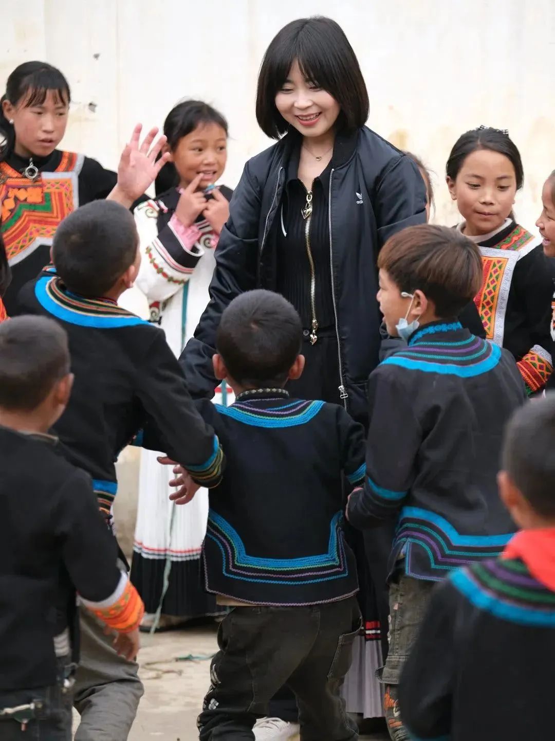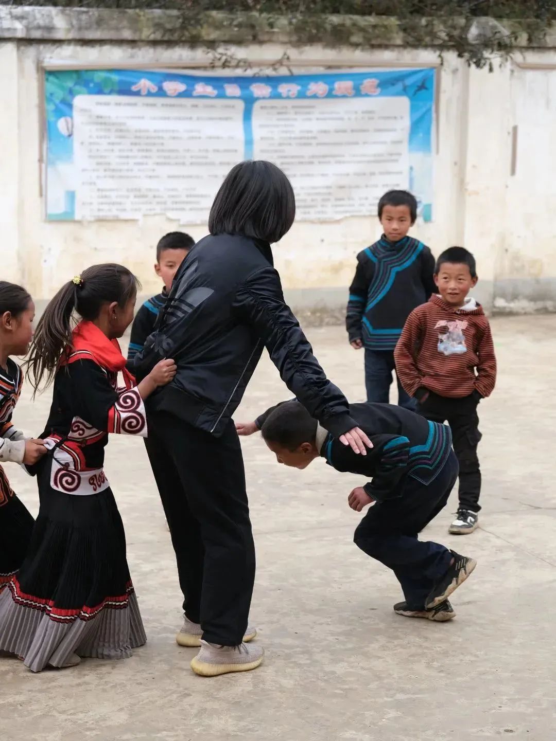 公益委的小伙伴們在小朋友的“教學”下還體驗了當?shù)貍鹘y(tǒng)舞蹈,一起玩丟手絹、老鷹捉小雞等游戲。在玩游戲的過程中,小朋友們反復(fù)唱著:“聽我說,謝謝你,因為有你,溫暖了四季;謝謝你,感謝有你,世界更美麗;我要謝謝你,因為有你,愛常在心底;謝謝你,感謝有你,把幸福傳遞……”公益委的小伙伴們被小朋友們的真摯、純樸和簡單的快樂深深打動。