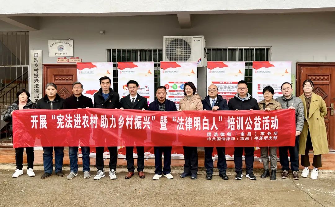 2022年12月4日是國家憲法日,也是我國現行憲法公布施行40周年。國浩南昌辦公室響應“憲法進農村”號召及落實《“鄉村振興 法治同行”幫扶結對協議》,國浩執行合伙人、國浩南昌主任馮帆,國浩南昌黨支部書記、合伙人蔡明,合伙人張代平等一行再赴南昌市進賢縣梅莊鎮,與富華村開展了一場憲法宣傳和“法律明白人”培訓公益活動,并設立了“鄉村振興法律服務站”。