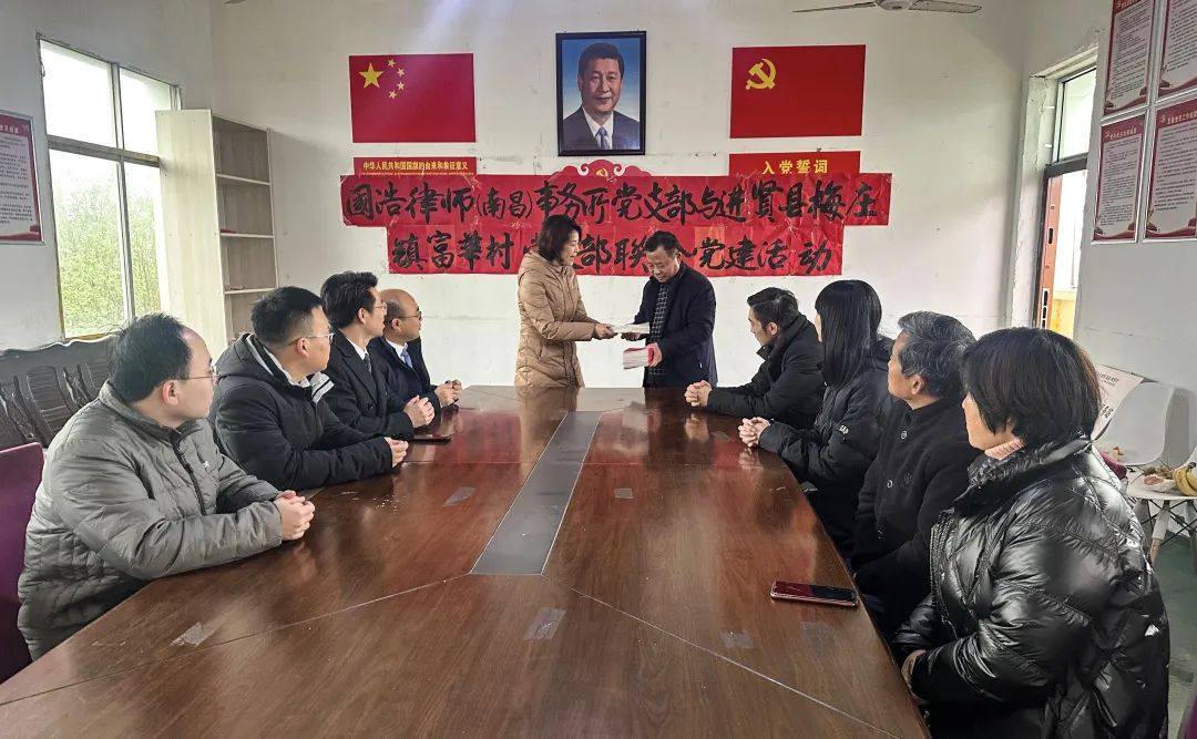 活動上,馮帆主任首先代表國浩南昌向富華村捐贈了《憲法》《鄉村振興促進法》等書籍,并簡要介紹了國家憲法宣傳周。馮帆主任表示,鄉村振興需落到實處,可利用農村結構的獨特性,加大農業種植、鄉村旅游,促進農業現代化發展。富華村支部書記胡新安等人對當前村莊及村民的相關情況、困惑作了詳細介紹。