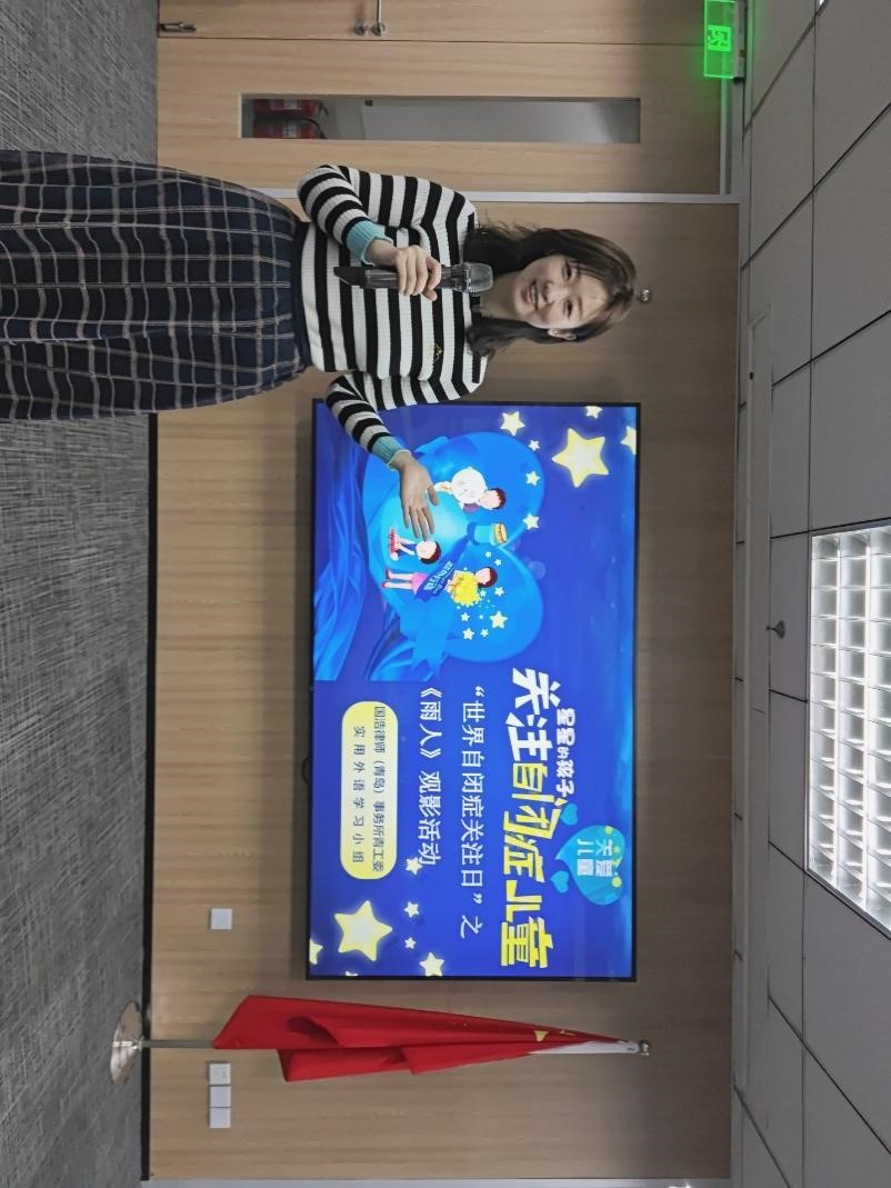 國浩青島青工委學管部部長、律師曹榮君在觀影前簡要介紹了自閉癥歷史和在臨床上的主要特征及其成因,并呼吁大家給星星的孩子多一點理解和關注,隨后大家對于自閉癥患者的內(nèi)心世界進行了深度剖析和討論。