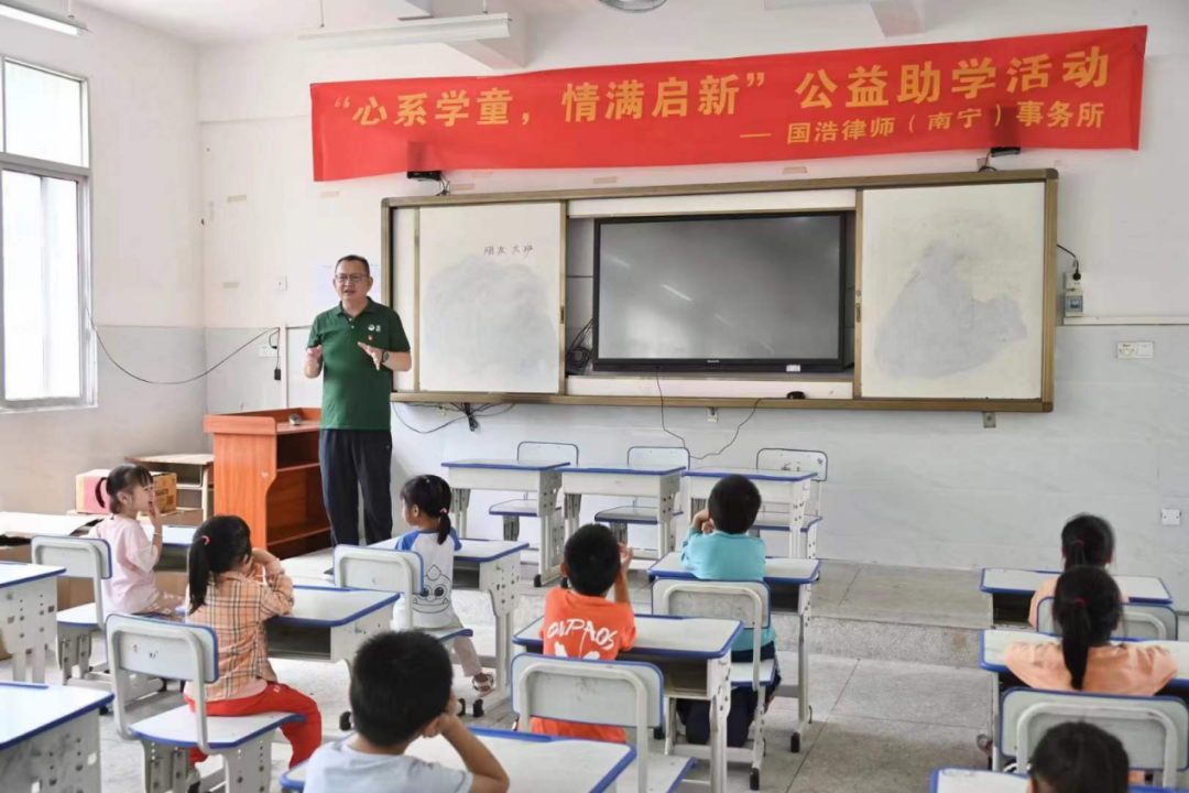 為深入學習貫徹黨的二十大精神,弘揚中華民族扶貧濟困的傳統美德,2023年9月8日,在國浩南寧管理合伙人李林輝、吳永文的帶領下,活動小組前往廣西天等縣馱堪鄉啟新小學(以下簡稱“啟新小學”)開展“心系學童,情滿啟新”公益助學活動。