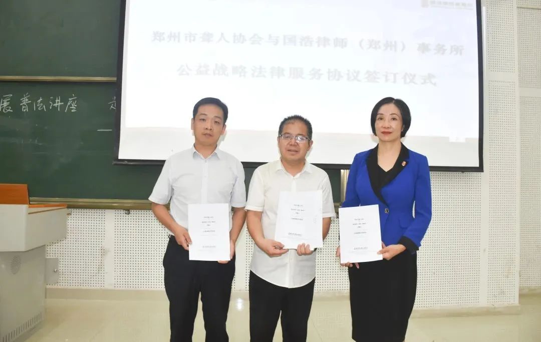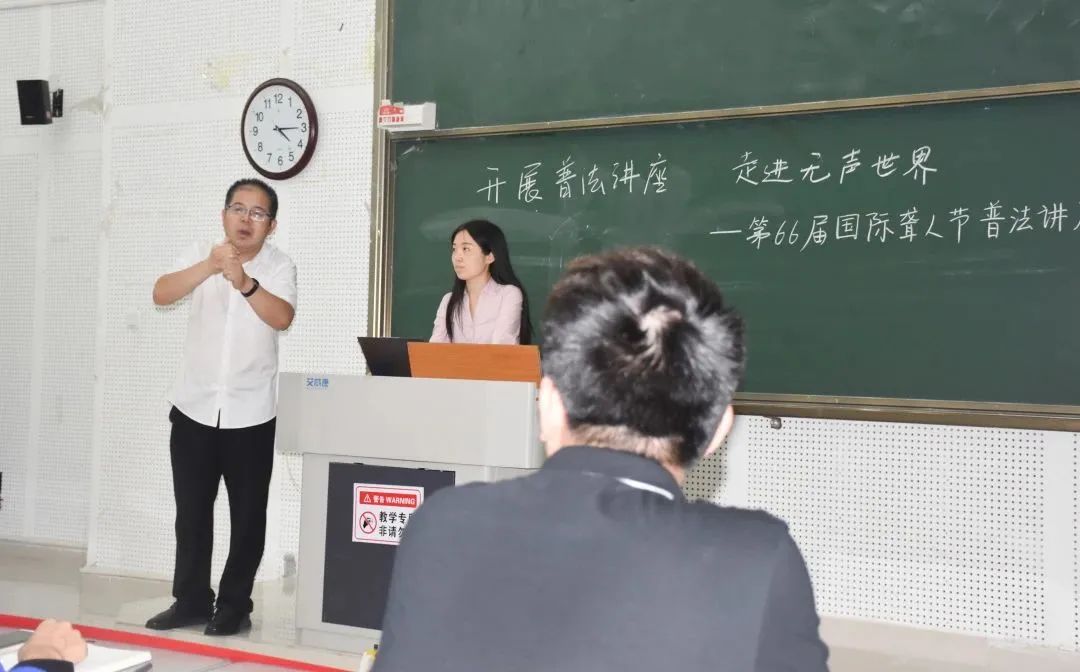 2023年9月24日是第66個(gè)“國(guó)際聾人日”。為了關(guān)愛聽障人士、增強(qiáng)聽障人士法律意識(shí)、維護(hù)聽障人士合法權(quán)益,9月22日,國(guó)浩鄭州攜手鄭州市聾人協(xié)會(huì)走進(jìn)鄭州工程技術(shù)學(xué)院特殊教育學(xué)院,舉辦了第66屆“國(guó)際聾人節(jié)”主題活動(dòng)暨“開展普法宣傳,走進(jìn)無(wú)聲世界”公益普法講座。講座由鄭州市聾人協(xié)會(huì)主席李景明主持,國(guó)浩公益業(yè)務(wù)委員會(huì)委員、國(guó)浩鄭州合伙人趙明霞,國(guó)浩鄭州律師王甜、唐丹丹等參加了活動(dòng)。