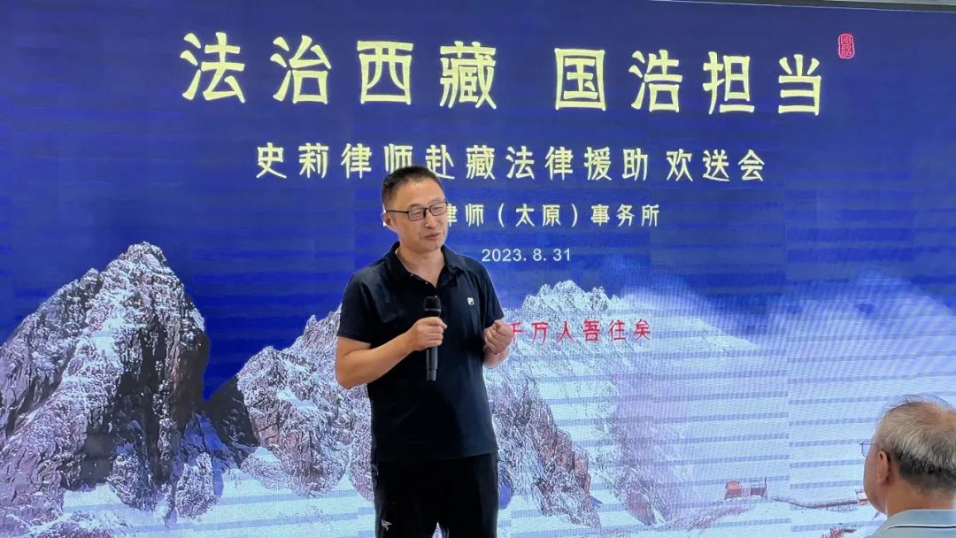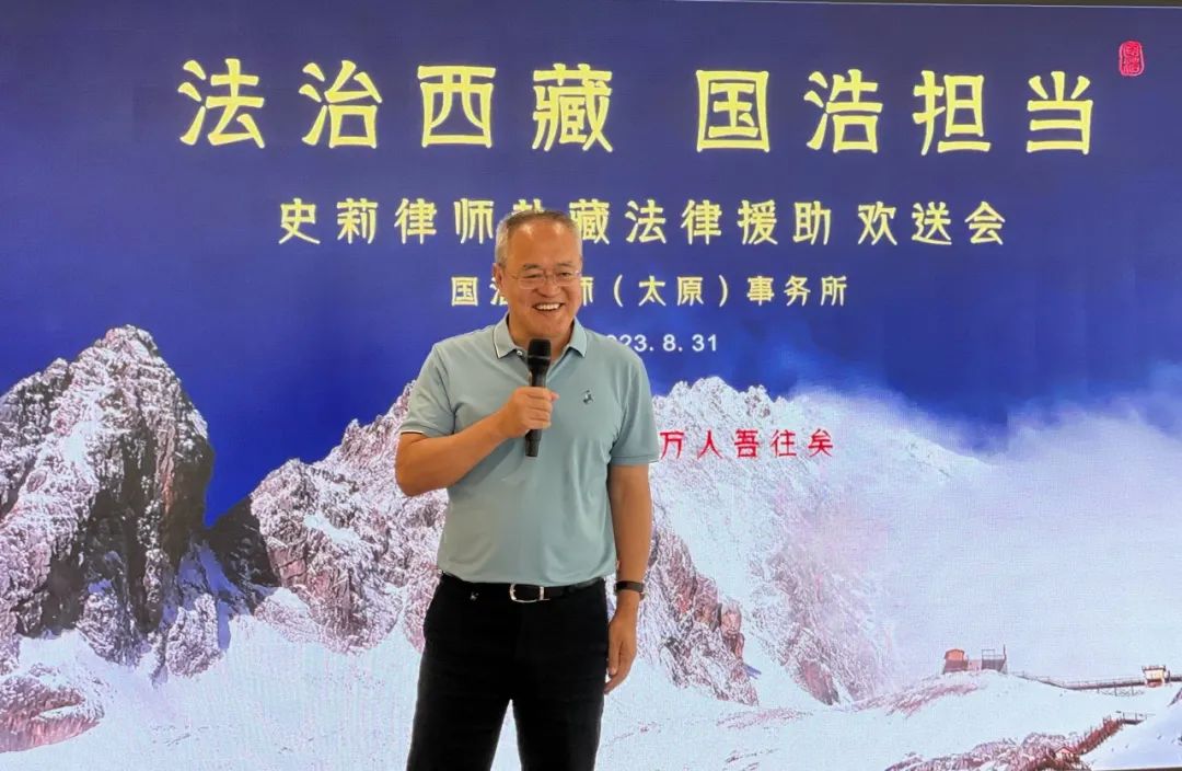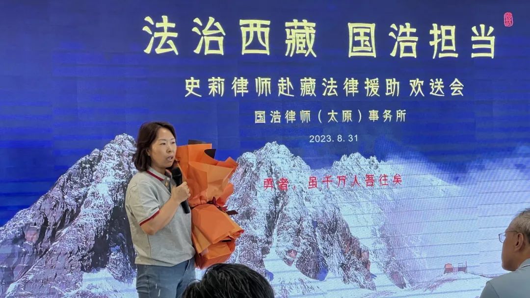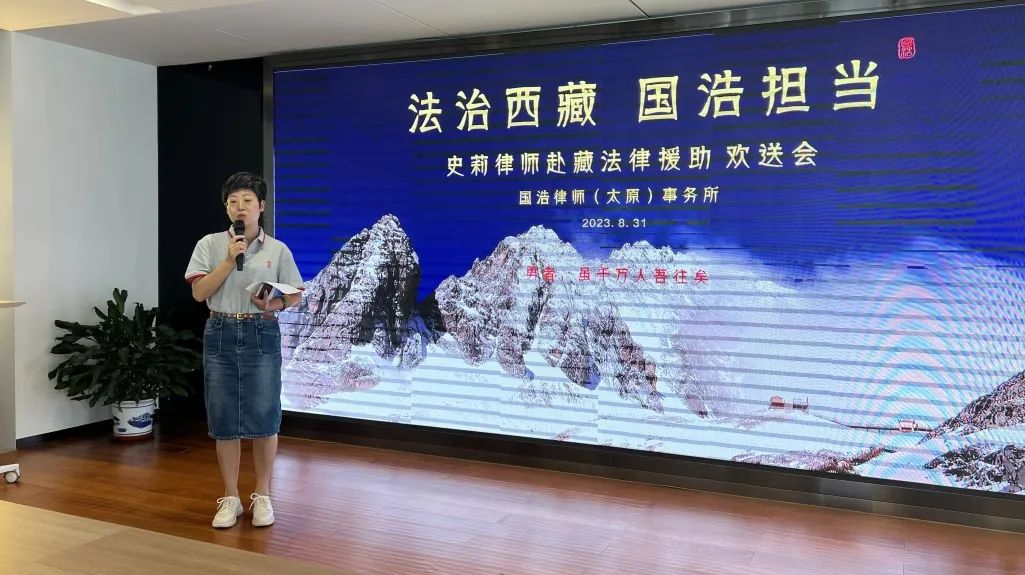 “律師援藏是推進法治西藏建設中的一項光榮任務,送法入藏是一項扶助貧弱、保障社會弱勢群體合法權益、發(fā)揮律師公益事業(yè)價值的崇高事業(yè)。”8月31日,在國浩太原辦公室為史莉律師舉辦的歡送會上,國浩太原管理合伙人、主任張蕾表示,國浩太原將全方位做好支持工作,包括照顧好律師家人,確保史莉律師在拉孜工作中沒有后顧之憂。