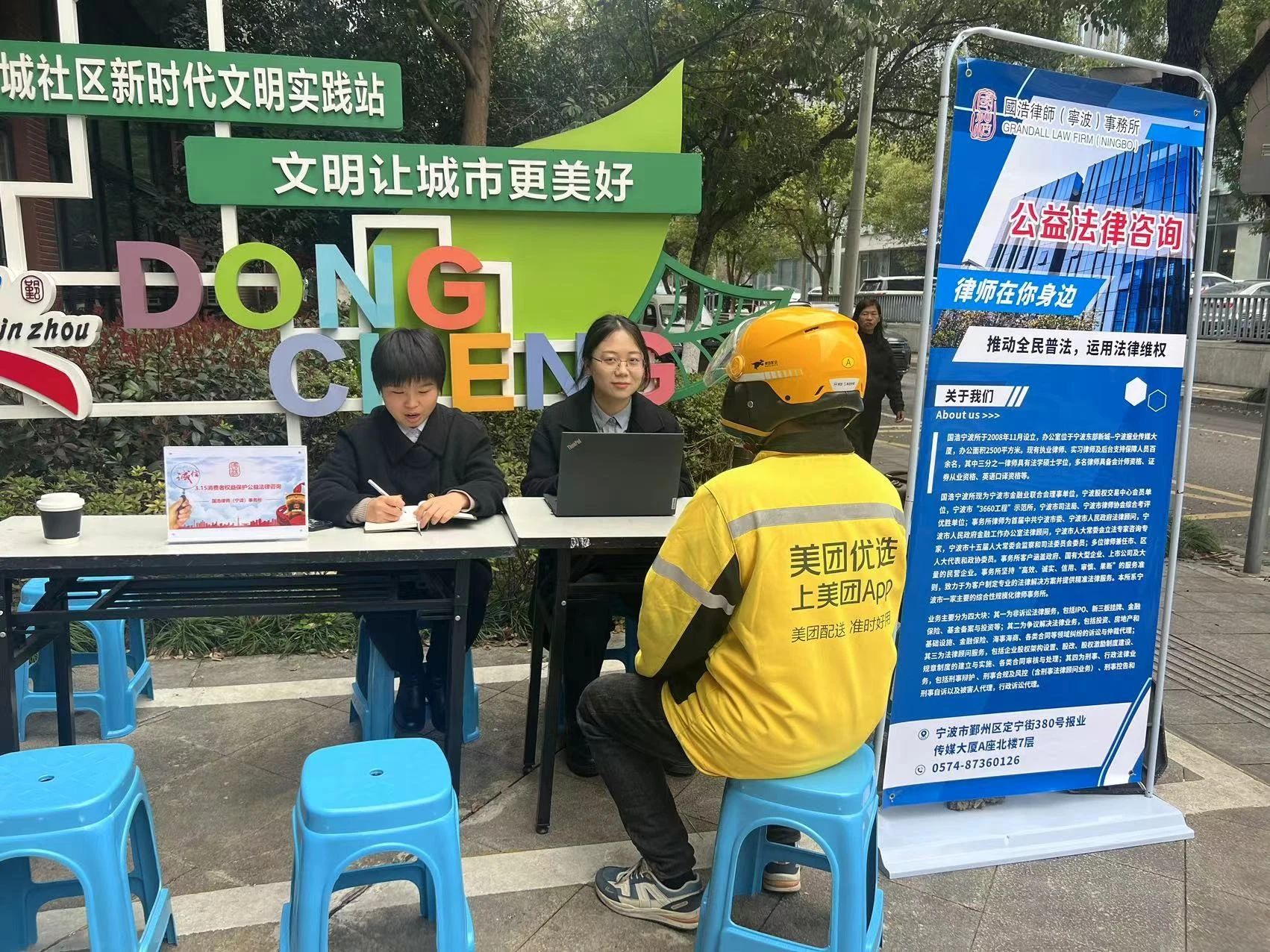 2024年3月15日,隨著第14個國際消費者權益日的到來,國浩寧波在寧波市鄞州區福明街道東城社區開展消費者權益保護公益法律咨詢。