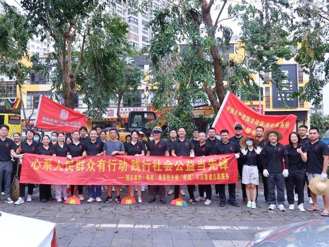 臺風“摩羯”侵襲海南,造成了嚴重的破壞。狂風暴雨過后,家園滿目瘡痍,重建工作迫在眉睫。危難時刻,國浩海南黨總支積極作為,組織國浩海南律師成立志愿者服務團,自愿投身到災后重建工作中,參與轄區道路清理、為受災群眾提供法律咨詢與援助、捐贈愛心物資等系列行動,充分展現了國浩海南律師的社會責任感和擔當精神。
