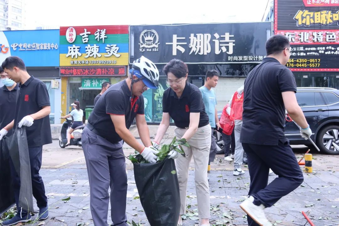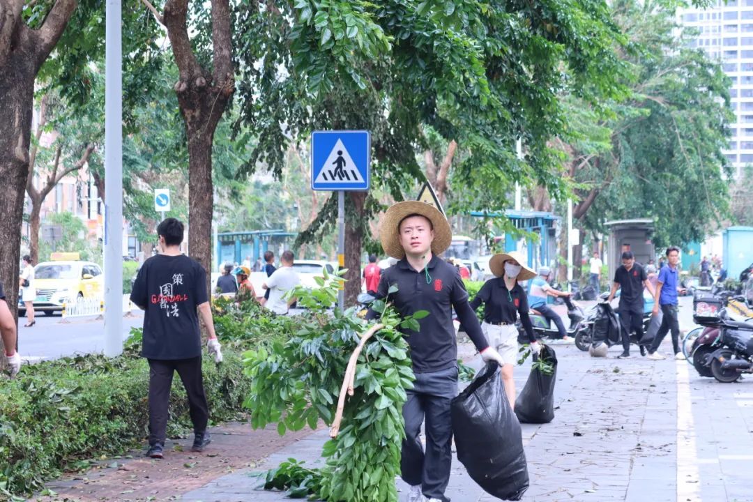 臺風過后,大量樹木損毀造成城市道路不暢,情況緊急。9月10日上午,國浩海南黨總支書記王澤位,國浩海南管理合伙人王龍奎、姜丹帶領33名國浩海南志愿服務團成員,主動聯系海口市金貿街道世貿社區,有序開展道路清障工作。大家不畏艱難,積極參與道路清理、垃圾搬運等工作,齊心協力,使濱貿路沿線恢復了往日的整潔和通暢。