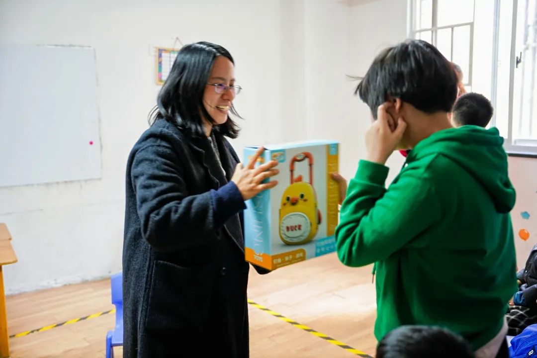 活動中,國浩長沙志愿者們陪伴孩子們開展“找朋友”游戲,協助他們用畫筆在巨大的畫布上繪出繽紛色彩,豐富的活動拉近了他們彼此間的距離。志愿者們還將玩具贈予孩子們。