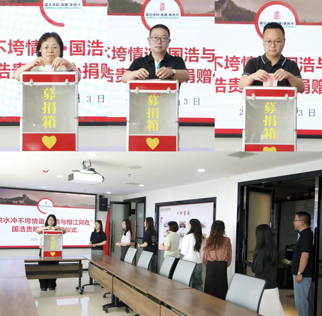 2025年6月24日,貴州省黔東南苗族侗族自治州榕江縣遭遇特大洪災,榕江縣司法局及古州鎮司法所的辦公場地和辦公設備遭受了不同程度的破壞,給榕江縣司法行政工作的正常開展帶來了極大影響。國浩貴陽在得知災情后,積極在所內組織開展愛心捐贈活動,以實際行動支援榕江縣司法局的災后重建工作。