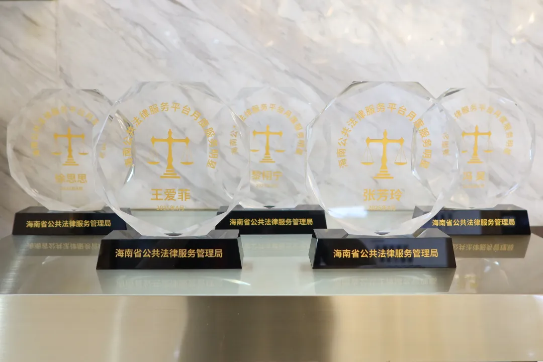 近日,海南省公共法律服務管理局評選“海南公共法律服務平臺月度服務明星”,國浩海南律師張芳玲、王愛菲、黎栩寧、徐思思、馮昊憑借專業表現和熱忱服務獲此殊榮,體現了國浩海南律師在公益法律服務領域的突出表現,彰顯了國浩海南投身公益服務、踐行社會責任的使命擔當。