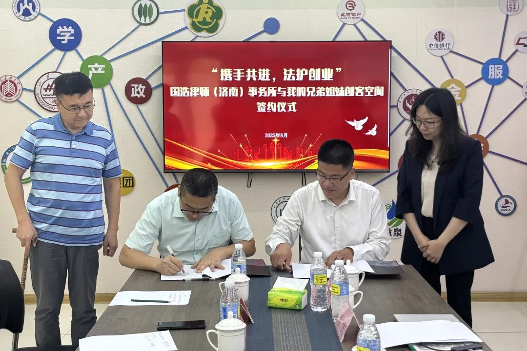 2025年8月29日,國浩律師(濟南)事務所與“我的兄弟姐妹創客空間”舉辦“攜手共進,法護創業”簽約儀式,為殘疾人創業者提供專業法律支持,筑牢創業路上的“法律防護網”。濟南市歷下區殘疾人聯合會二級調研員李劍波、一級主任科員高吉收,歷下區聾人協會主席宋凱,濟南市泉潤助殘公益服務中心主任滿效志,國浩濟南合伙人劉慶,國浩濟南公益委主任、合伙人王進,律師伯玉潔及殘疾人創業代表齊聚現場。