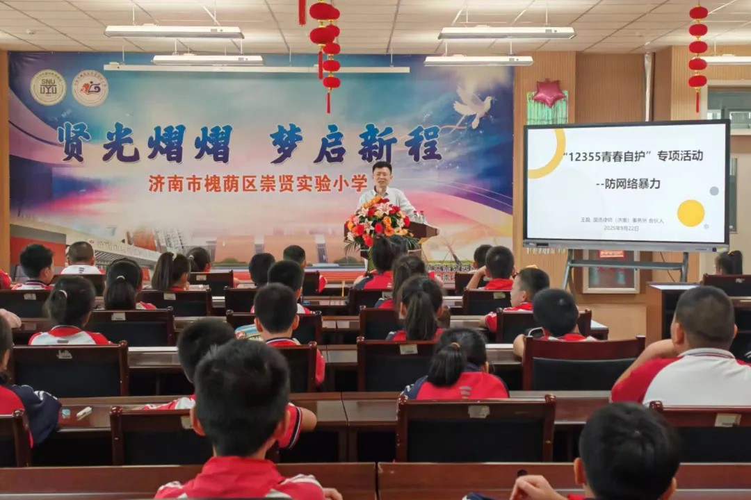 2025年9月22日,由共青團濟南市委主辦,濟南市歷城區團工委、濟南市槐蔭區崇賢實驗小學、國浩濟南共同承辦的“泉城·青益——12355青少年法治宣傳教育服務活動”在濟南市槐蔭區崇賢實驗小學成功舉行。