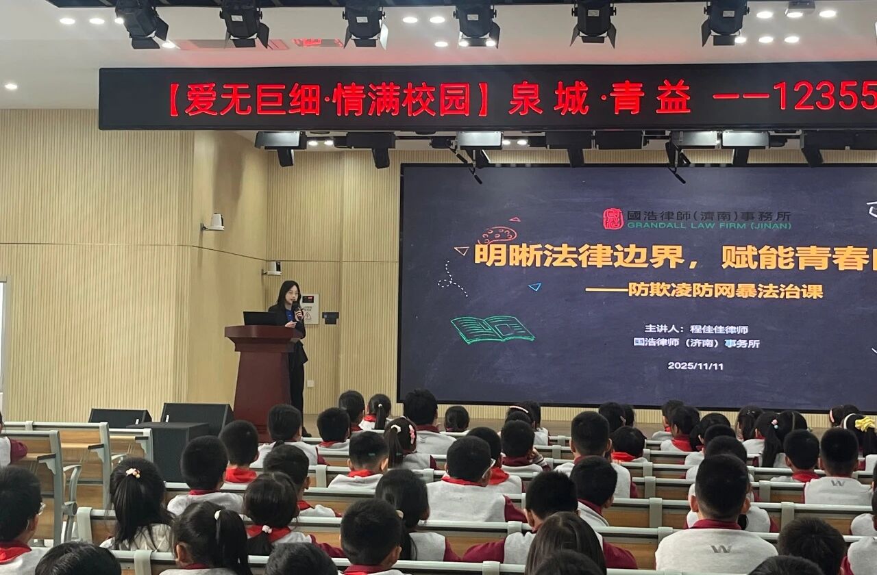 “泉城·青益——12355青少年法治宣傳教育服務活動”是國浩濟南履行社會責任、參與青少年法治建設(shè)的公益實踐之一。法治進校園活動切實增強了學生的法治意識和自我保護能力,為構(gòu)建平安、和諧、法治的校園環(huán)境打下了堅實基礎(chǔ)。未來,國浩濟南將繼續(xù)開展形式多樣的公益普法活動,全方位守護青少年健康成長。