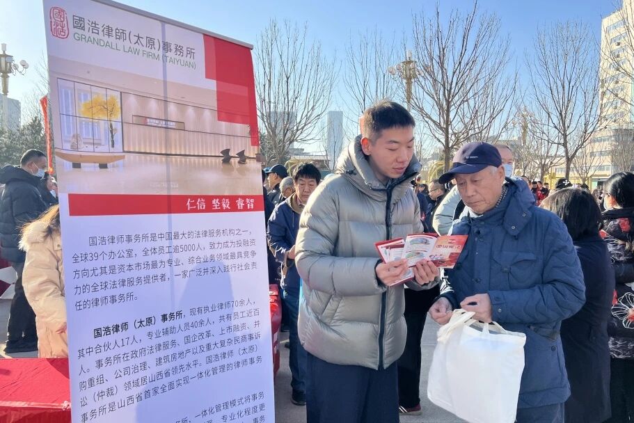 國(guó)浩太原律師高定凱與李文晶共赴長(zhǎng)風(fēng)南社區(qū),開展憲法宣傳活動(dòng)并解答群眾疑問。